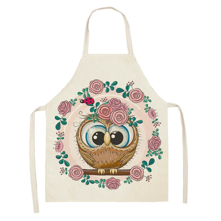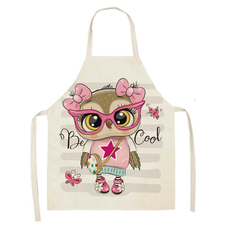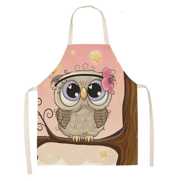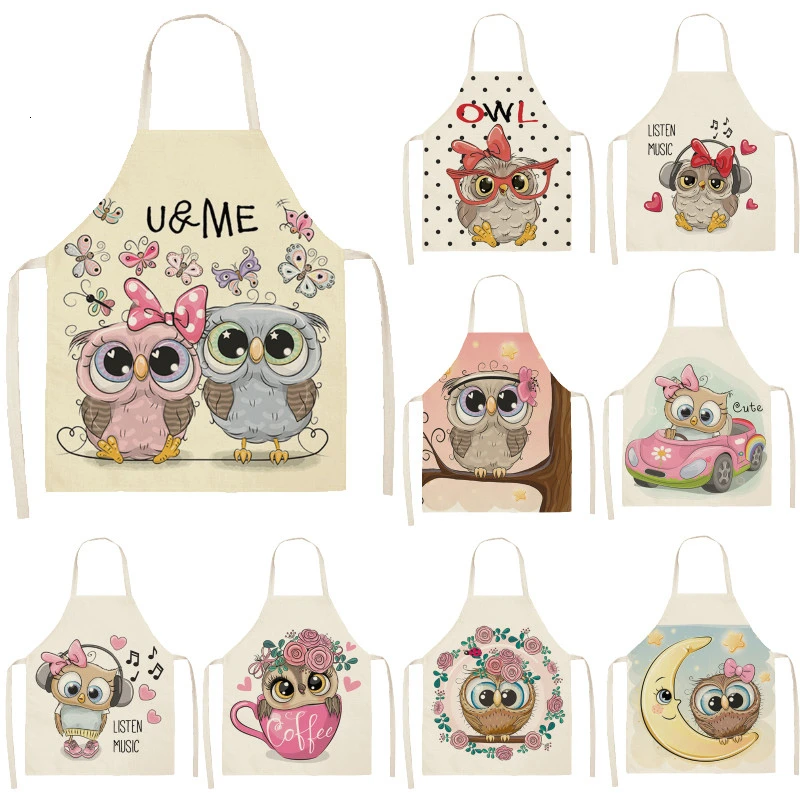 Фартук шеф-повара 1 шт., Короткие Кухонные фартуки с принтом сов, цветов-кошек, для домашнего приготовления пищи, 47-38 см