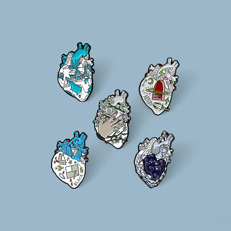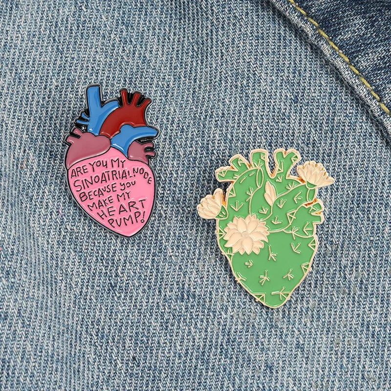 Значок на лацкан с эмалью, анатомическая брошь в форме сердца с цве...