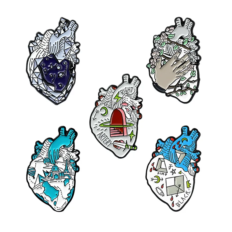 Анатомические эмалированные булавки в виде человеческого сердца, му...