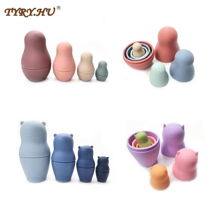 TYRY.HU, 8 шт., кролик, медведь, силиконовые игрушки, мягкие строительные блоки Дженга, 3D складные Обучающие строительные игрушки из искусственного силикона, Прорезыватель для зубов