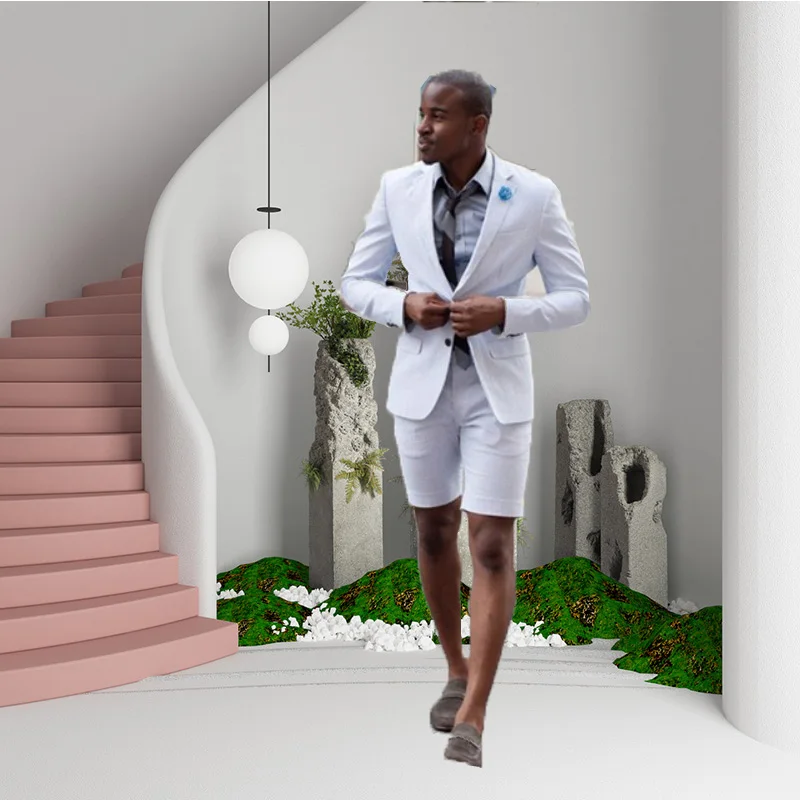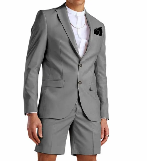 2021 Повседневный светло-серый Свадебный Мужской костюм с короткими брюками, деловой мужской костюм, Пляжная мужская летняя одежда для жениха, костюм лучшего Мужчины 1