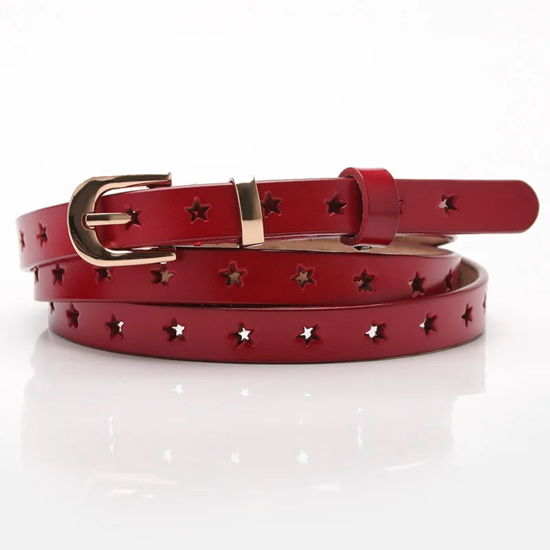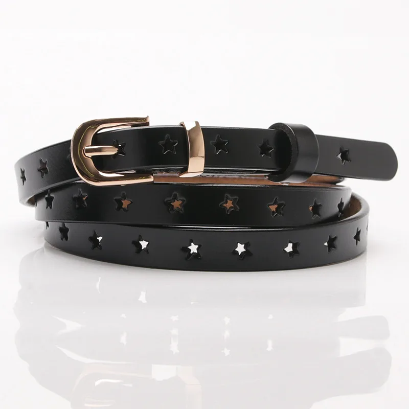 Ремень женский кожаный, тонкий, с золотой пряжкой, черный