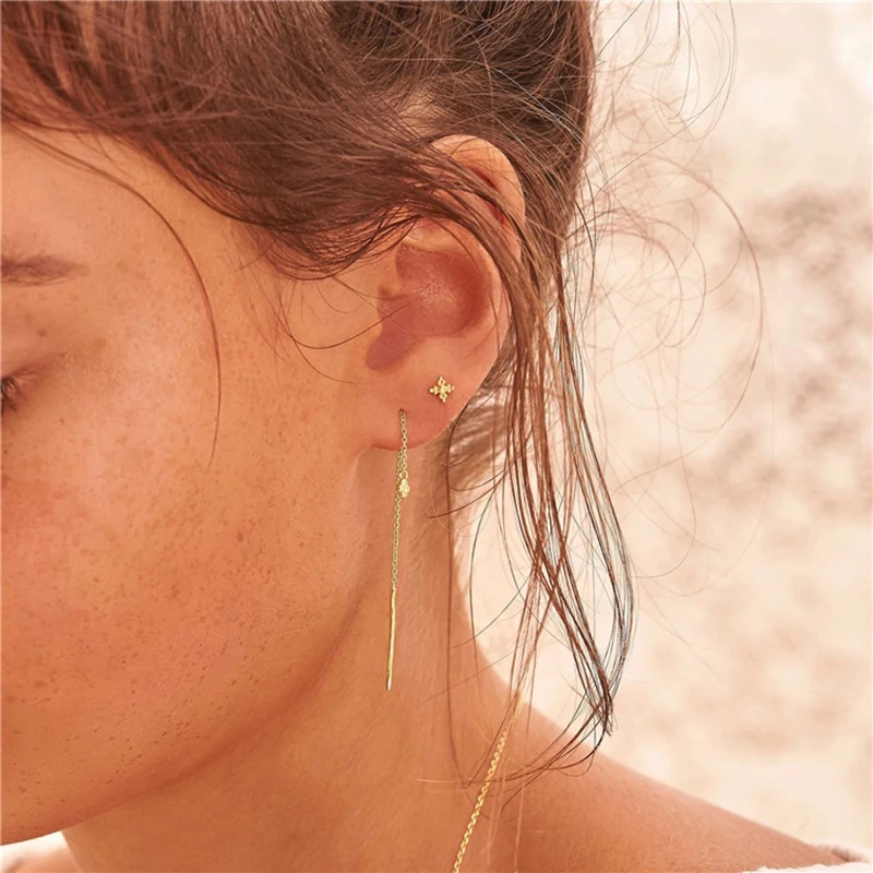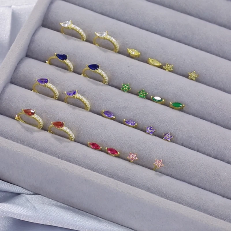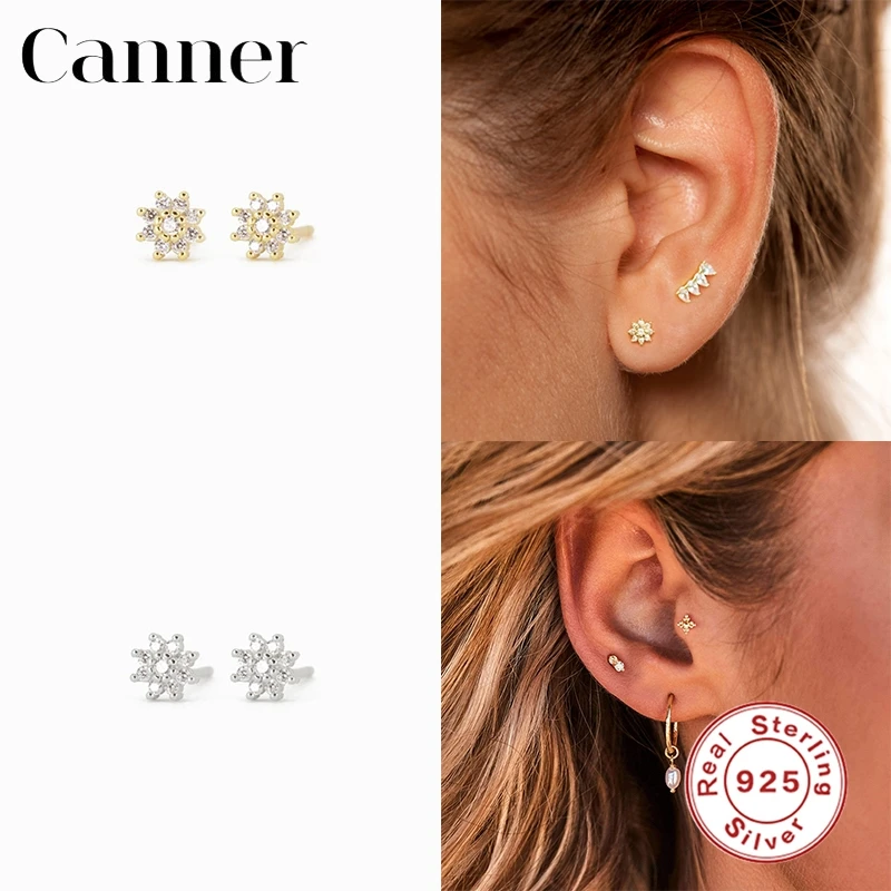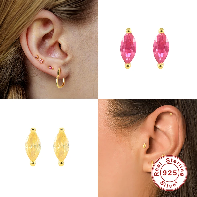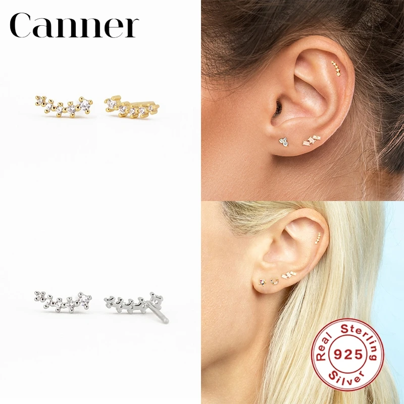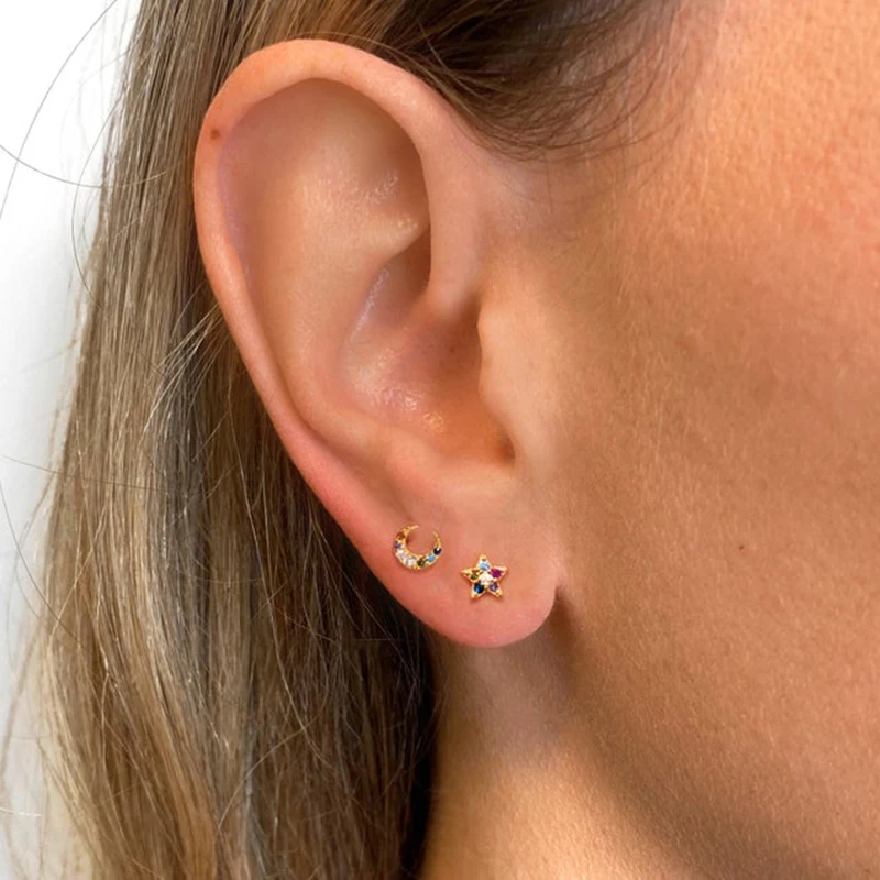 Женские серьги-гвоздики из стерлингового серебра с Луной и звездами, геометрические украшения для пирсинга с кубическим фианитом 2021, модные серьги Plata 925 W5