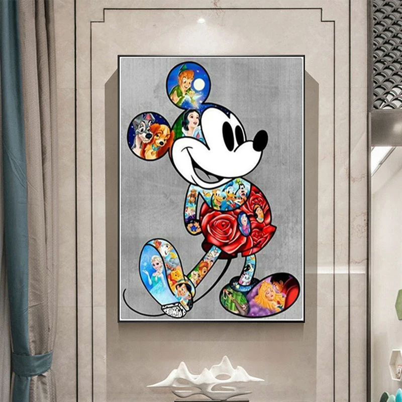 Диснеевские Мультяшные красочные Микки Маус Холст Картина граффити улица искусство стены для детской комнаты Cusdros