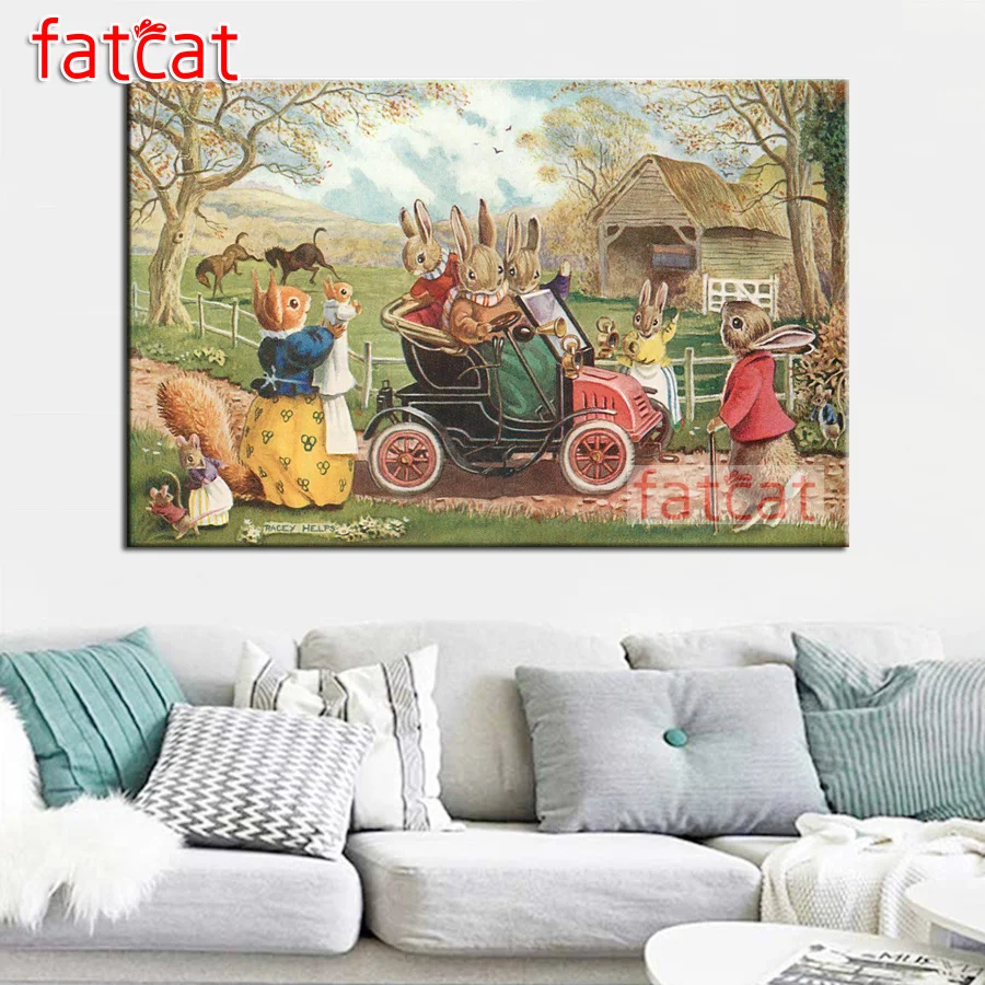 FATCAT набор семьи кроликов 5D DIY алмазная живопись полная Алмазная Вышивка крестом наборы Алмазная мозаика рукоделие Арт Декор стены AE2978