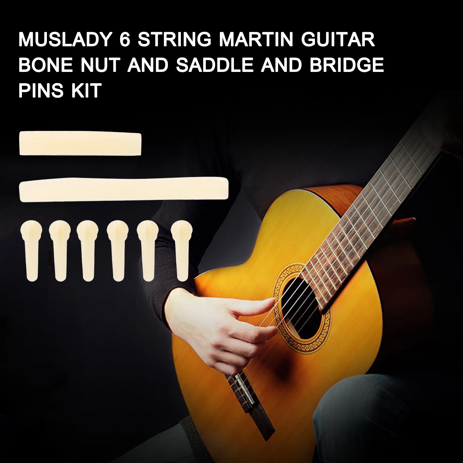 Шестиструнное седло для гитары Muslady Martin, предварительно установленная костная гайка и 6 шт. мостовых комплектов штырей для акустической электрической гитары