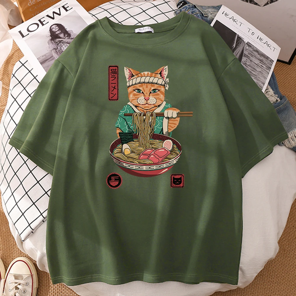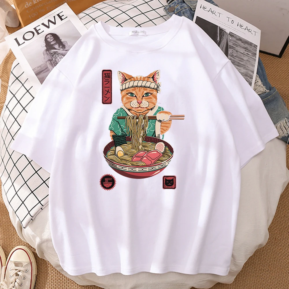 Футболка мужская с принтом вкусной кошки лапши, удобная модная руба...