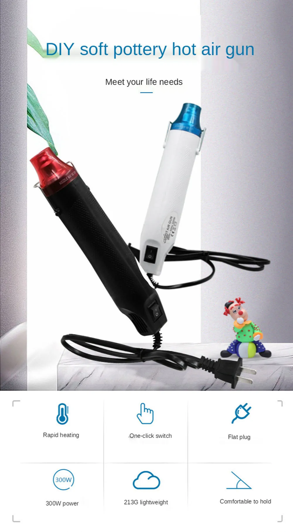 220V DIY пистолет горячего воздуха мощный инструмент горячего воздуха 200 300 Вт Температурный пистолет с Опорное основание термоусадочный пластик инструмент из разных цветов