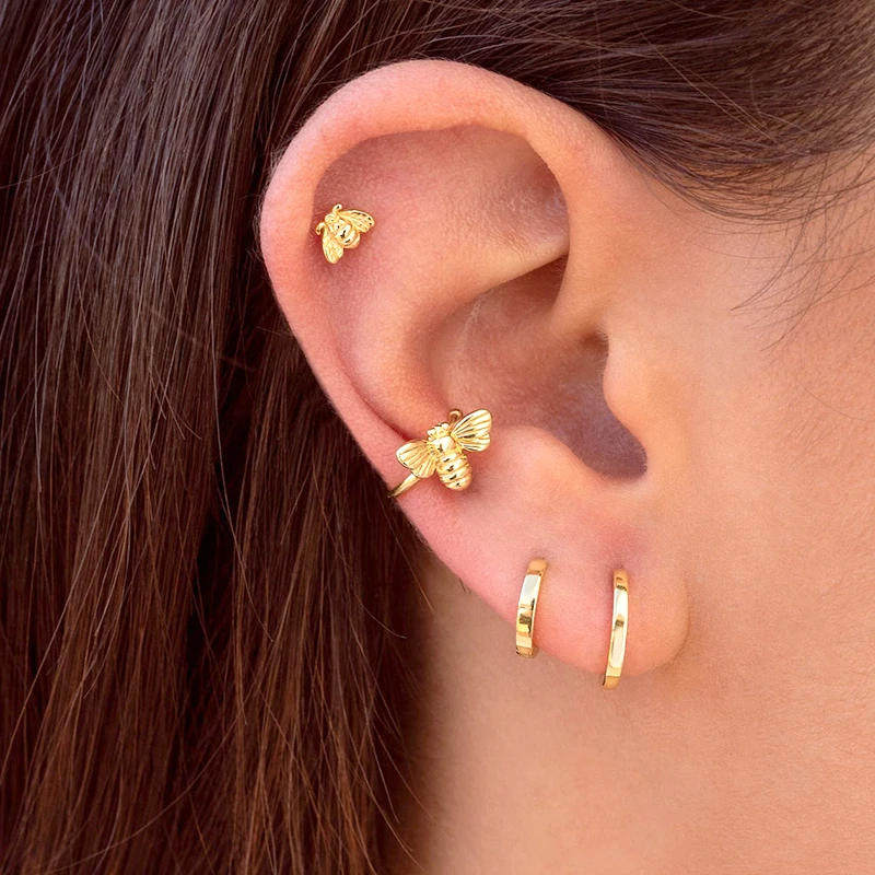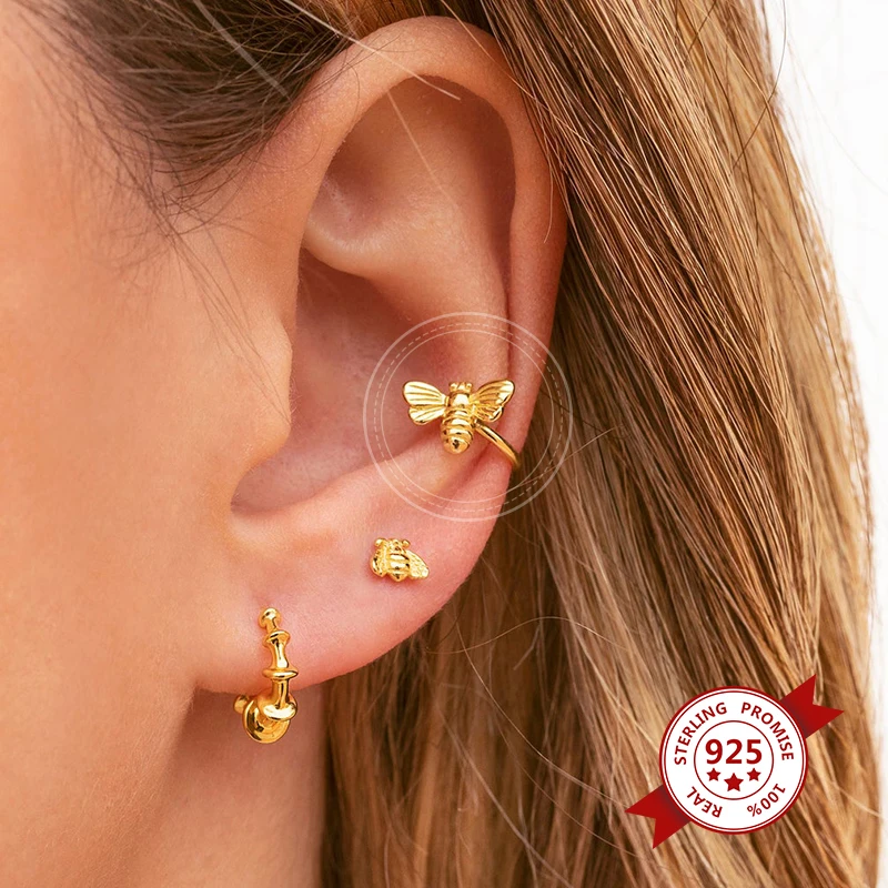 Серьги-каффы с позолоченными фианитами, в стиле хип-хоп, панк, 24 карата