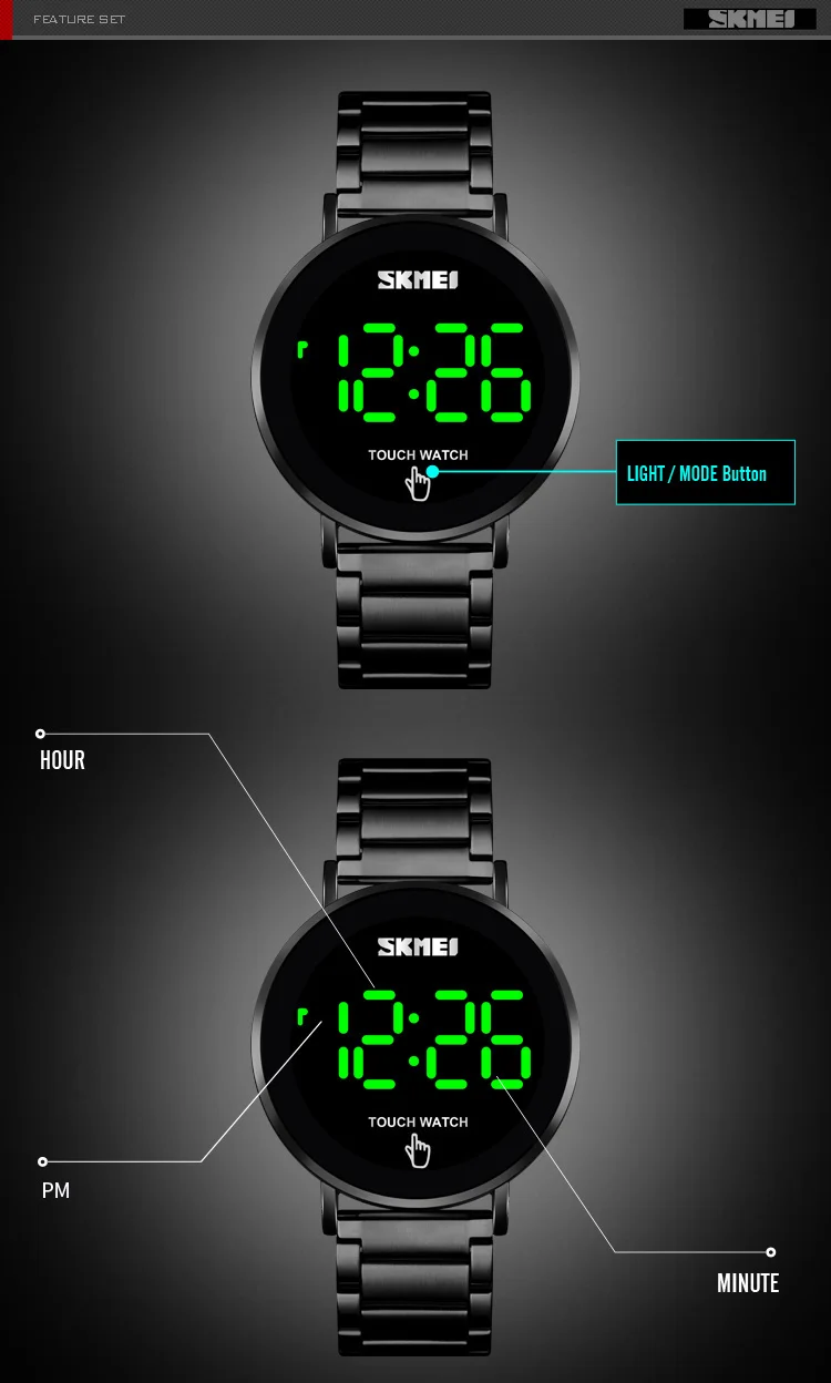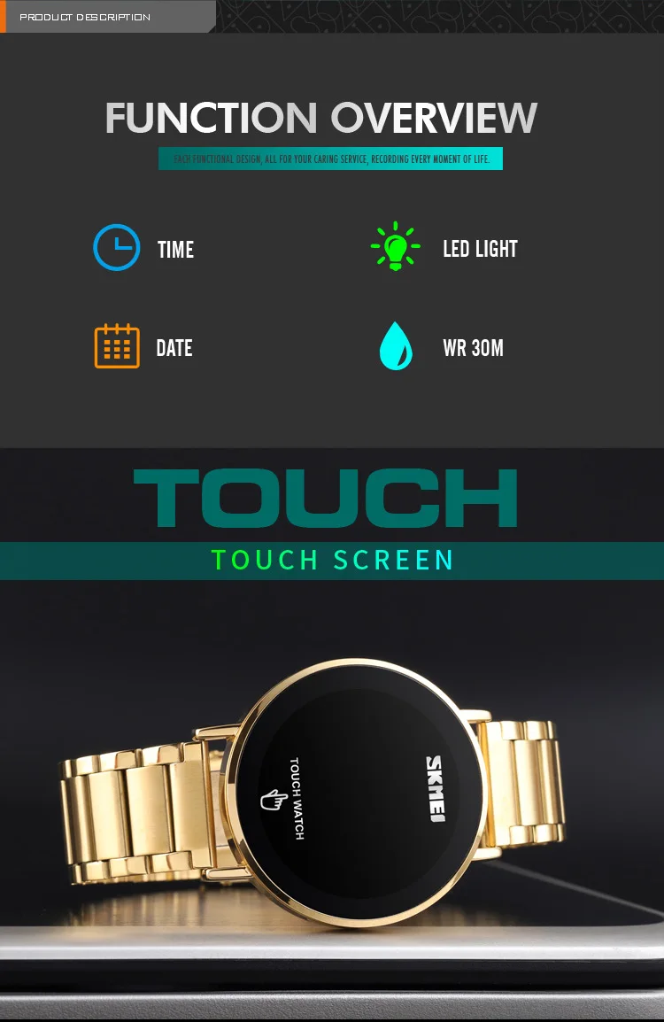 Новые 2021 SKMEI часы с сенсорным экраном модные сенсорные СВЕТОДИОДНЫЕ Цифровые мужские часы водонепроницаемые часы из нержавеющей стали черные наручные часы Relojes Para