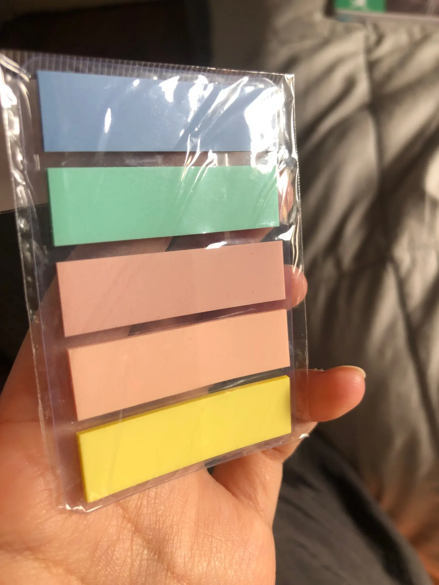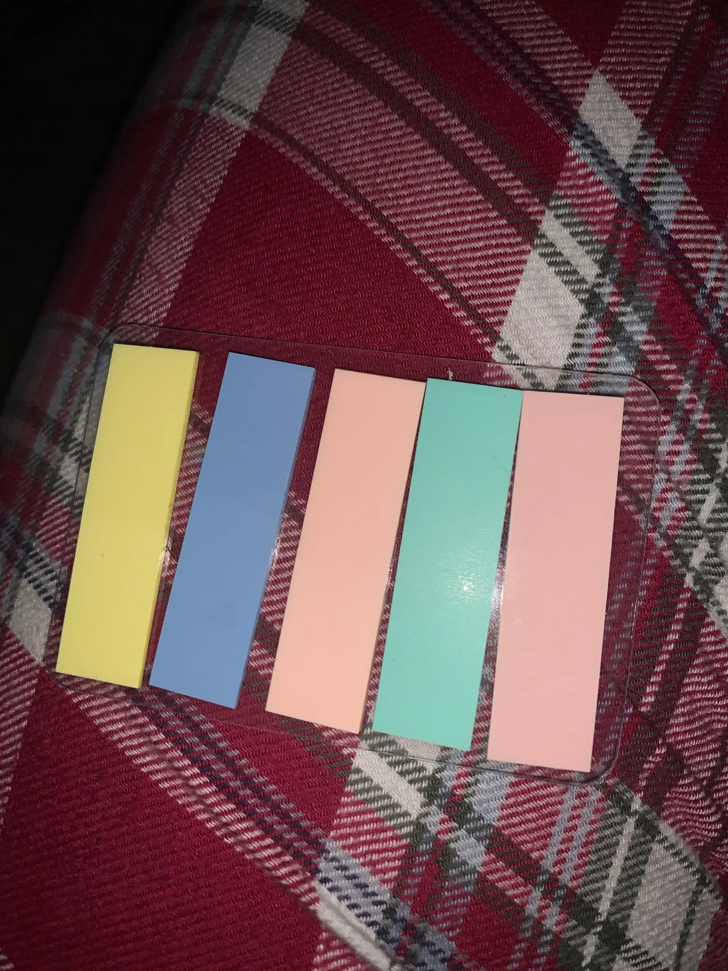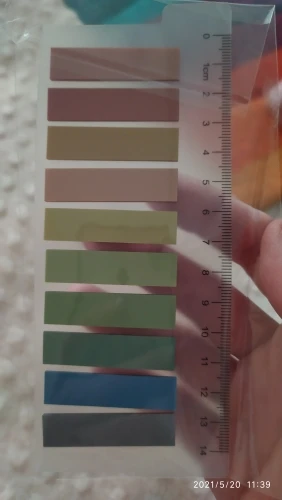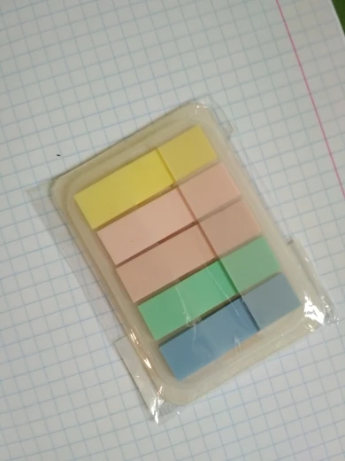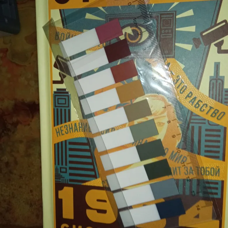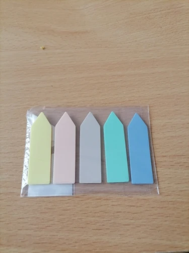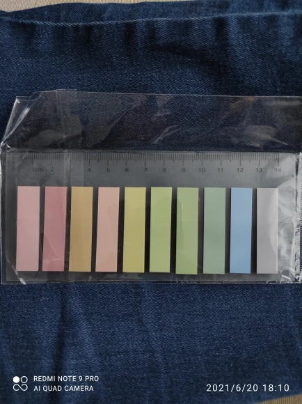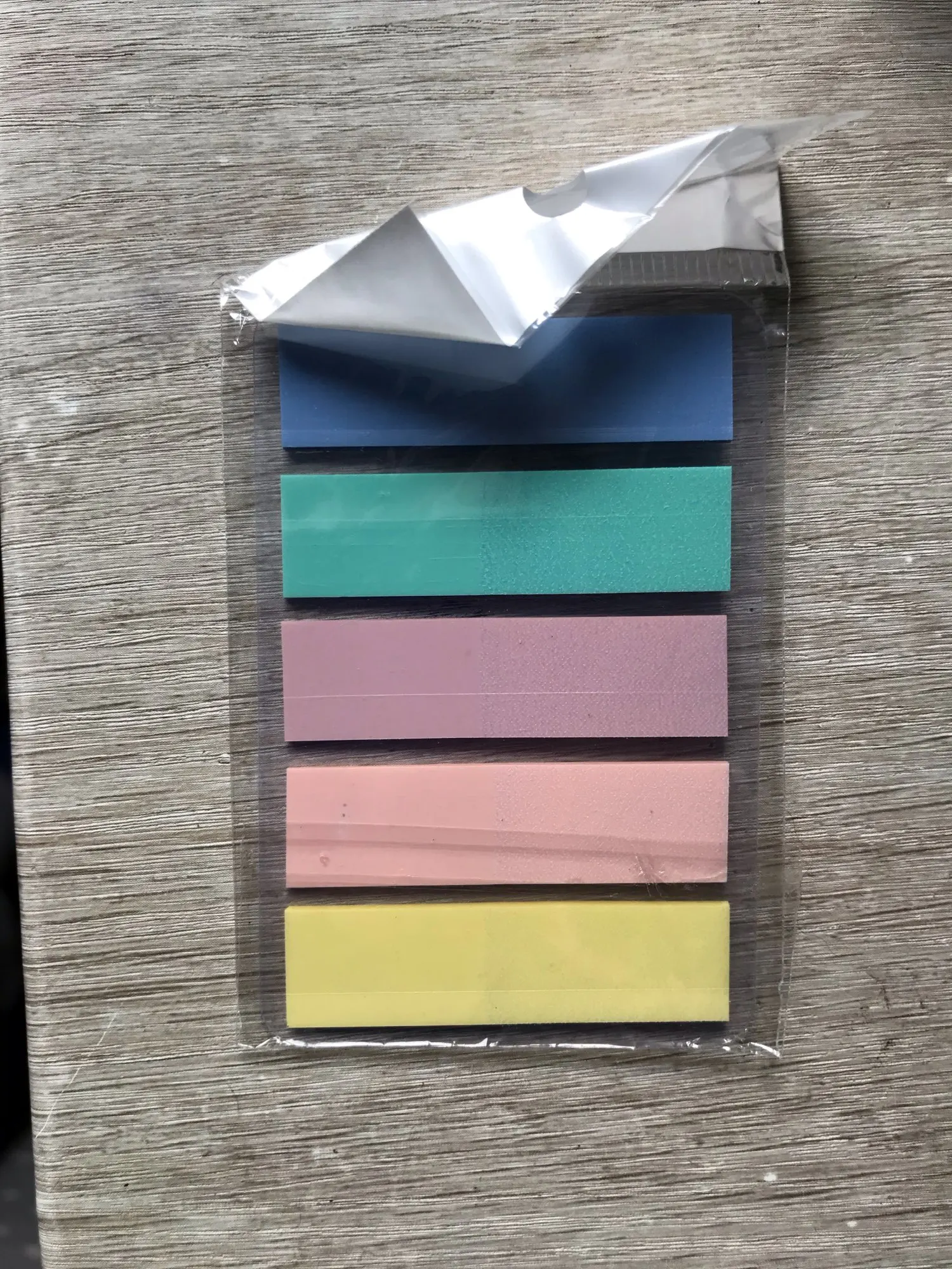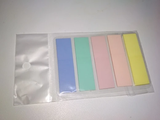 Цвета у стикеров приятные, приглушенные. Клей не сильно липкий, что, с одной стороны, хорошо. Но из-за этого, находясь в стопке, они болтаются и легко могут открепиться без вашего желания. И то ли неровно отрезали подложку для закладок, то ли сами закладки не совсем ровно приклеили.