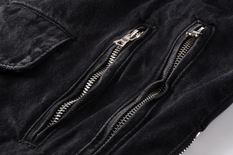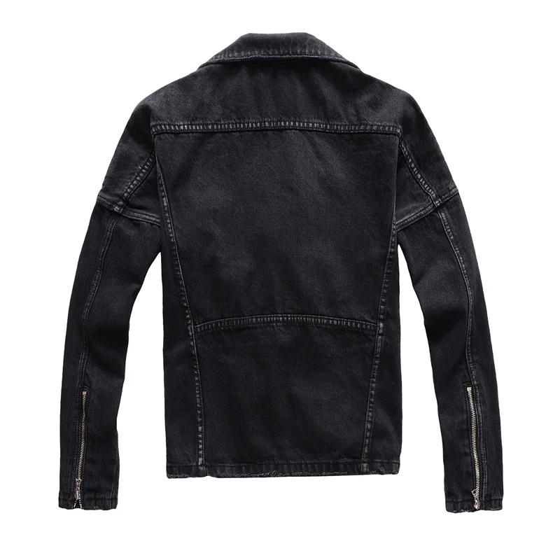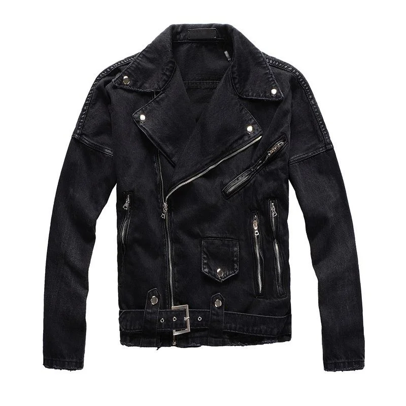 Джинсовая куртка мужская на молнии, уличная одежда, однотонная Модная Черная байкерская куртка из денима в стиле панк, джинсовая куртка, большой размер