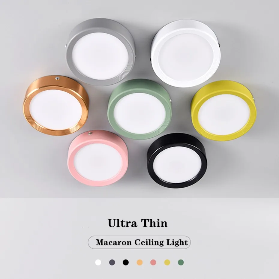 Ультратонкий потолочный светодиодный светильник с поверхностным монтажом, 3 Вт, 5 Вт, 7 Вт, 9 Вт, светодиодная панельная лампа AC85-265V, потолочная лампа для светильник