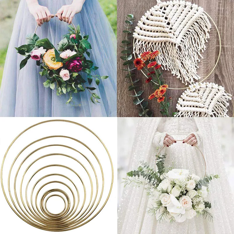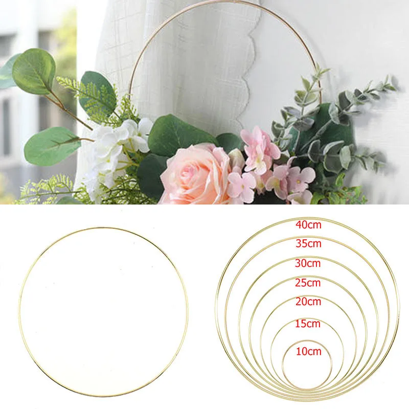 10-40 см Цвета: золотистый Железный металлическое кольцо венок Гирлянда Свадебные украшения Babyshower цветочный венок невесты цветы Ловец снов декоративный обруч