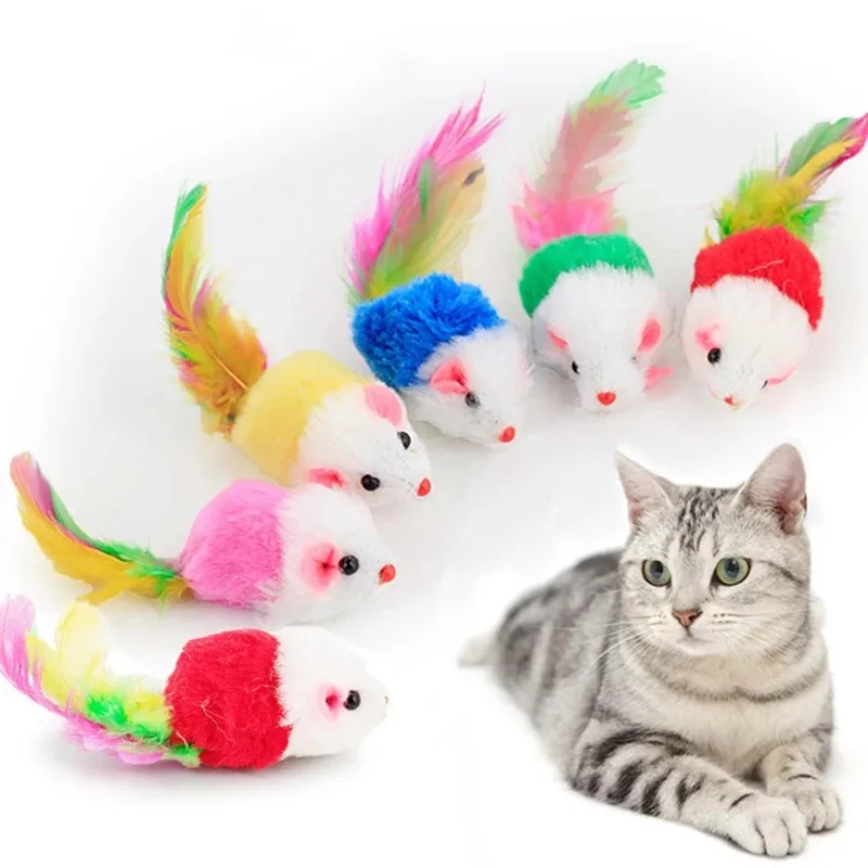 Милые мини мягкие флисовые Ложные мыши кошки игрушки красочные перо смешные игры Обучающие игрушки для кошек котенок, щенок, домашнее животное принадлежности