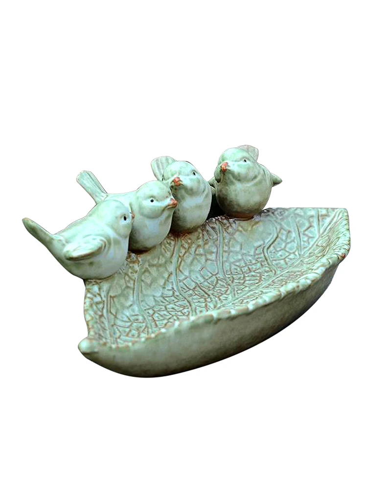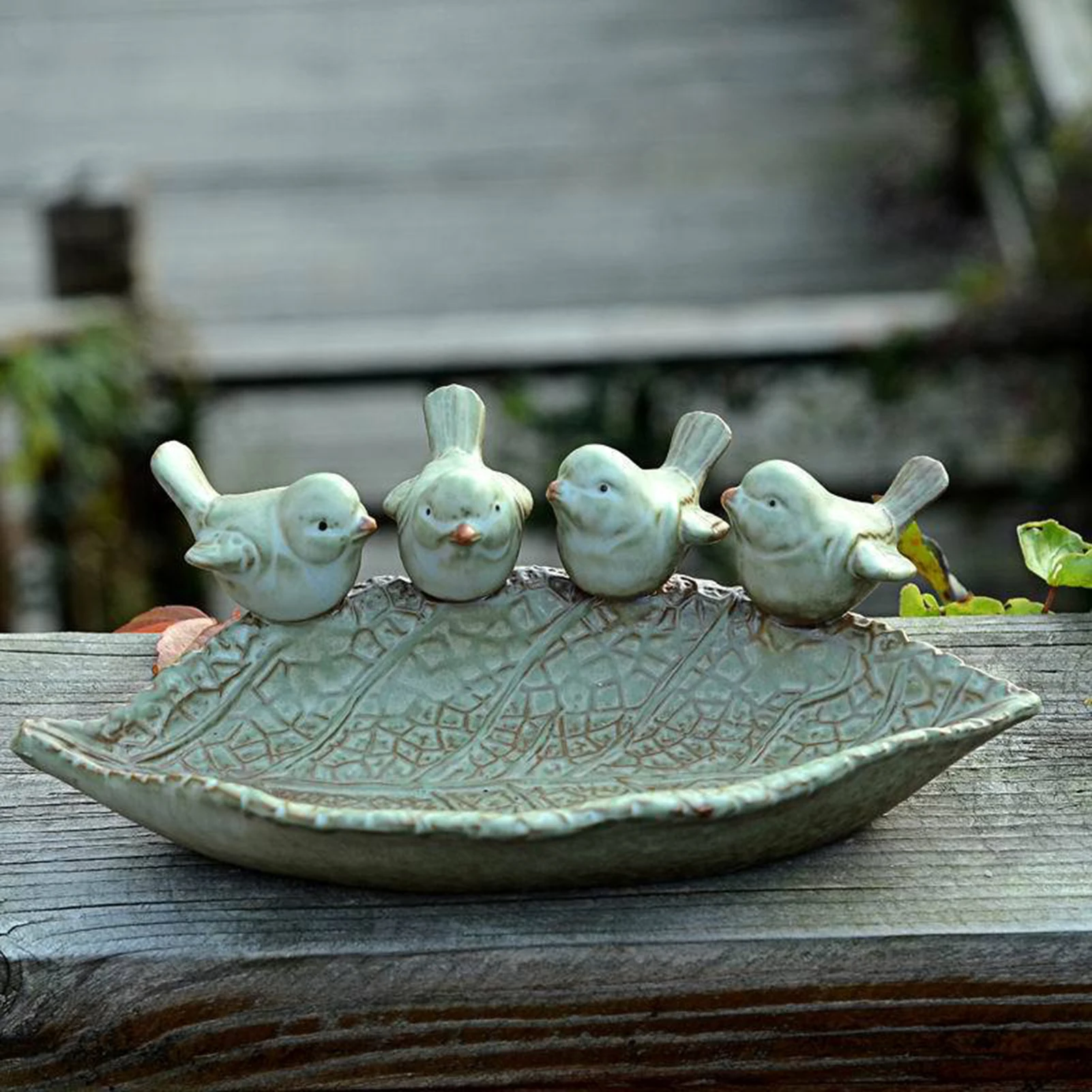 Керамический поднос в форме листа, кормушка для птиц, тарелка для фруктов в стиле ретро, уличная садовая кормушка корм для домашних животных и птиц, чаша, садовое украшение