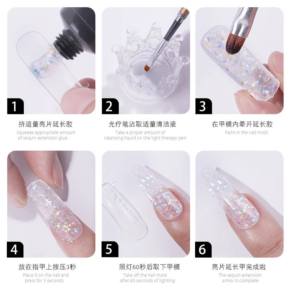 Шаги1. Отполируйте поверхность пальца пилочкой.2. Нанесите праймер на ногти, а затем используйте УФ или светодиодные лампы, чтобы дать ему застыть.3. Используйте накладные ногти, подходящие вашим ногтям.4. Возьмите соответствующее количество расширителя из формы для ногтей и с помощью кисти равномерно распределите расширитель.5. Поместите обработанные накладные ногти на ногти и используйте лампу для ногтей, чтобы она застыла.6. После того, как клей для наращивания высохнет, удалите рисунок ногтя.7. Нанесите верхнее покрытие светильник ите лампой для ногтей, чтобы она затвердевала.Для удаления:1. Используйте пилку для полировки поверхности ногтя, а затем оберните ноготь жидкостью для снятия ногтей примерно на пять минут.2. Используйте очиститель для кутикулы, чтобы она слегка опустилась.3. Нанесите слой питательного масла вокруг ногтей