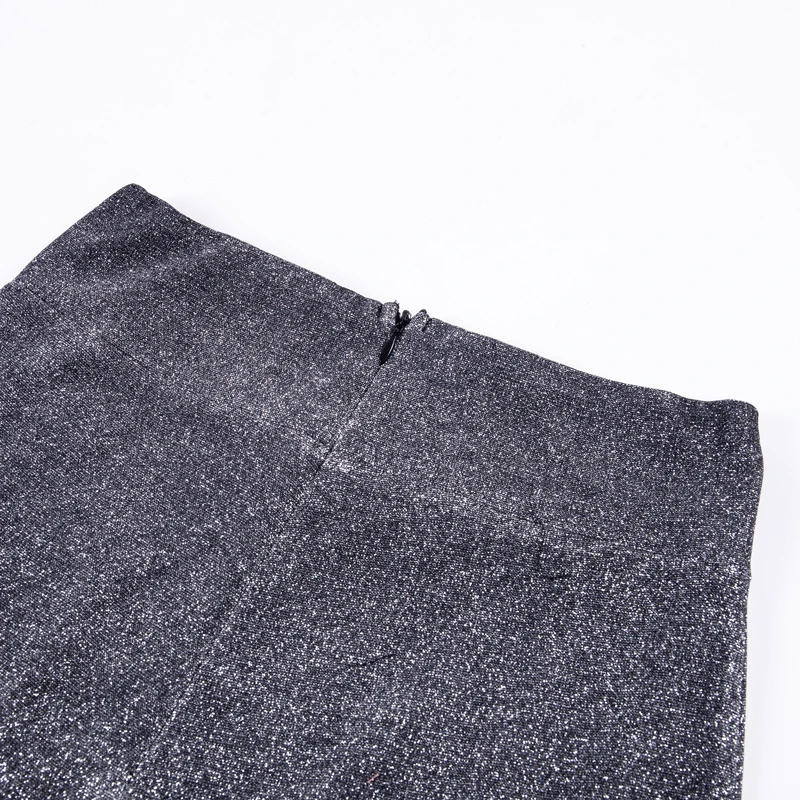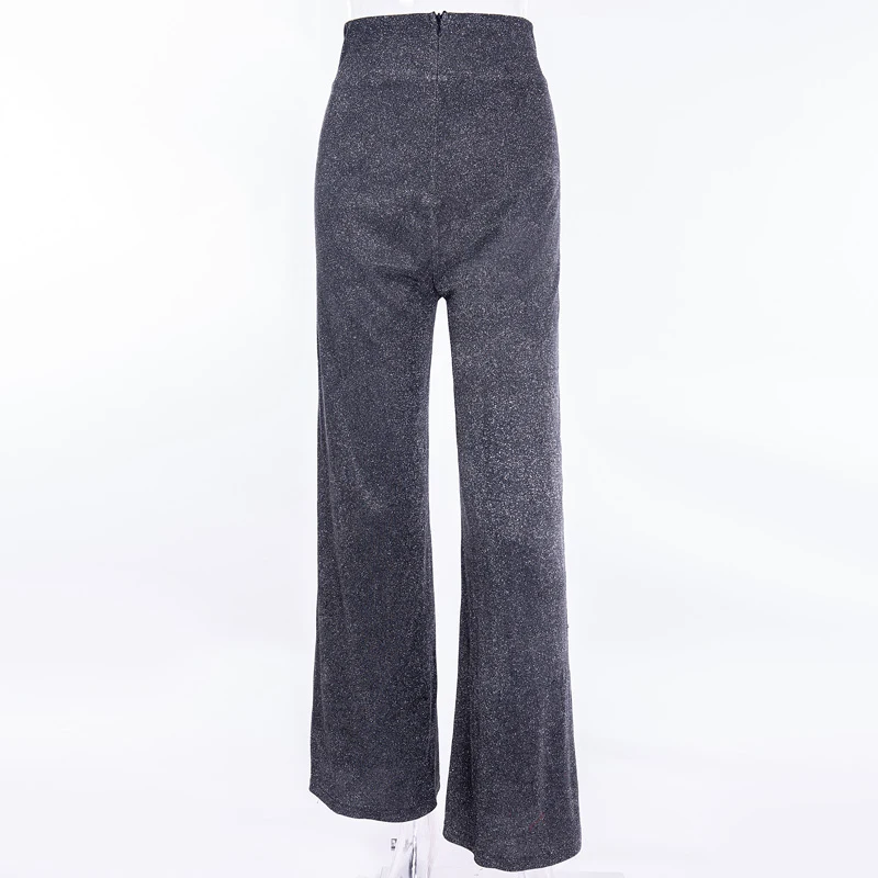 2021 серебряные блестящие широкие брюки с высокой талией и блесткам...