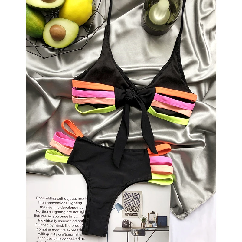 Спортивный треугольный комплект микро-бикини, лоскутный купальник с...