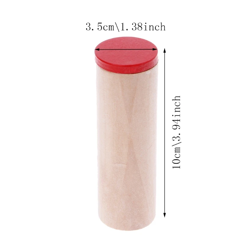 Цилиндры градуированы от очень мягкого до громкого, и каждый цилиндр имеет красный или зеленый верх и содержится в деревянной коробке