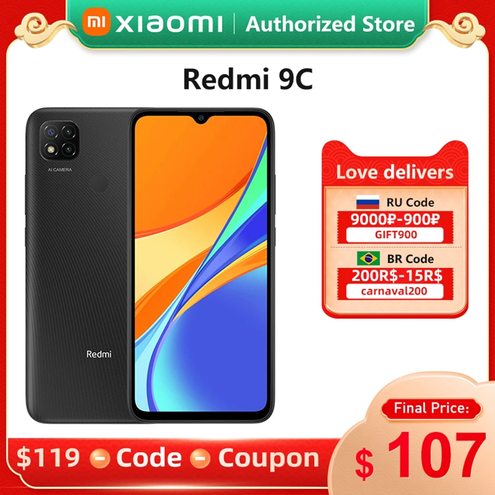 Смартфон Xiaomi Redmi 9C, 3 + 644128 ГБ, 6,53 дюйма, 13 МП, тройная камера, 5000 мА ч, MTK Helio G35 восемь ядер, 4G