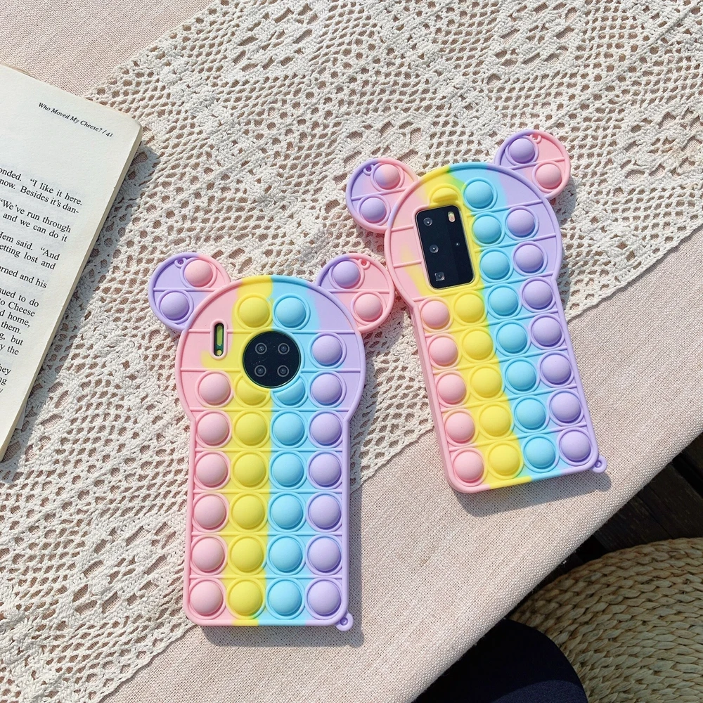 Радужный чехол с пузырьками и игрушками для Huawei P30 Lite P40 Pro...