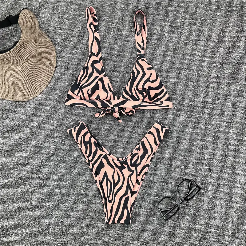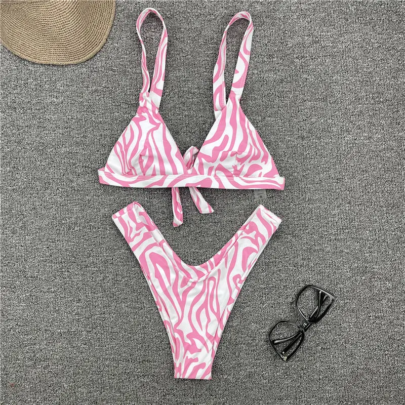 2021 сексуальный треугольный купальник с принтом, женский купальник с бантиком и открытой спиной, купальник с высоким вырезом, винтажный купальный костюм, бикини