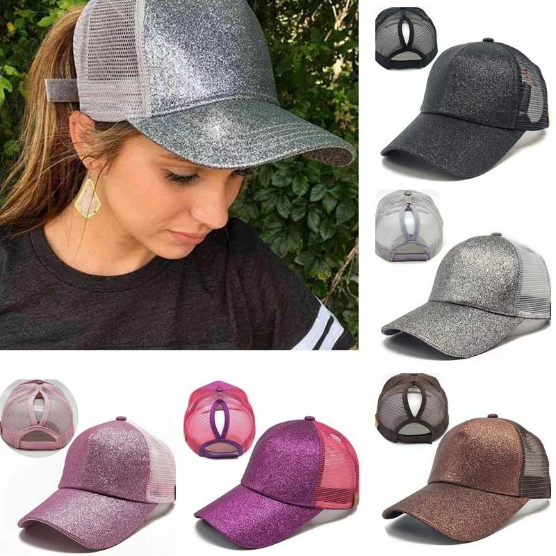 Женская Бейсболка с блестками, хлопковая кепка с сетчатым хвостом, регулируемая, 2021