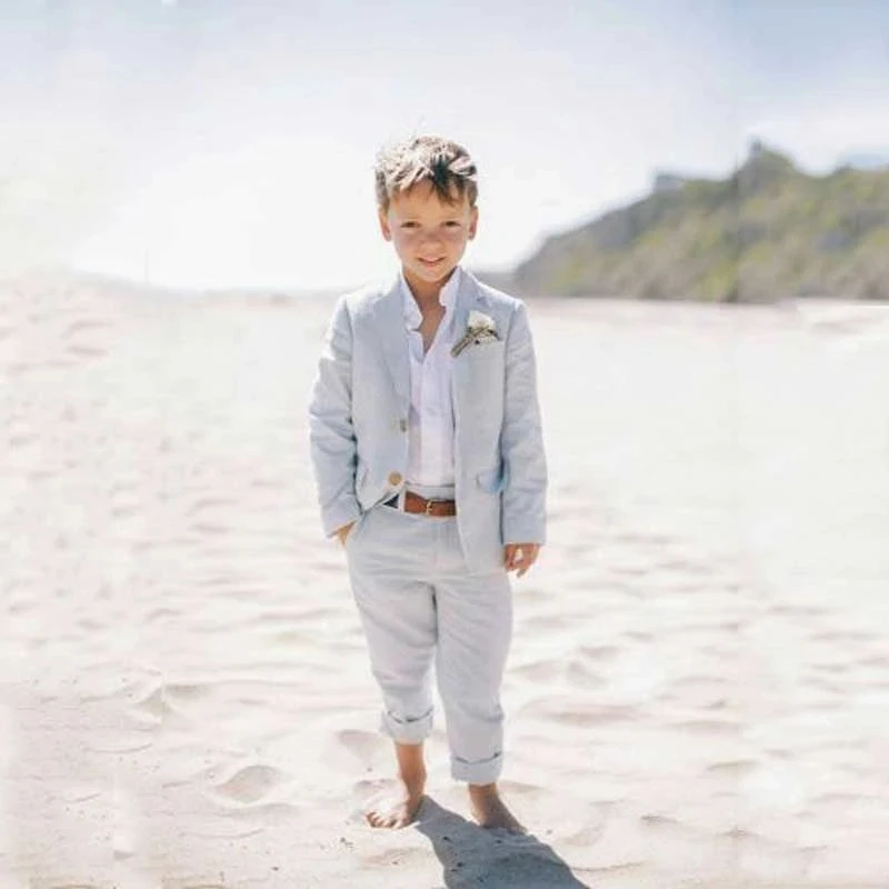 Летний Пляжный Свадебный синий льняной костюм для мальчиков 2021 Детские блейзеры костюм для мальчика официальная свадебная одежда детская одежда