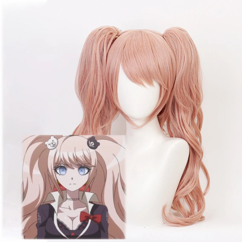 Костюм Аниме Danganronpa для косплея, джунко эношима, Униформа, рабочая одежда для кафе, короткая юбка, парик с двойным хвостом, черный, белый медведь
