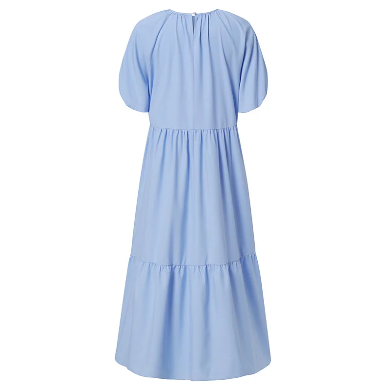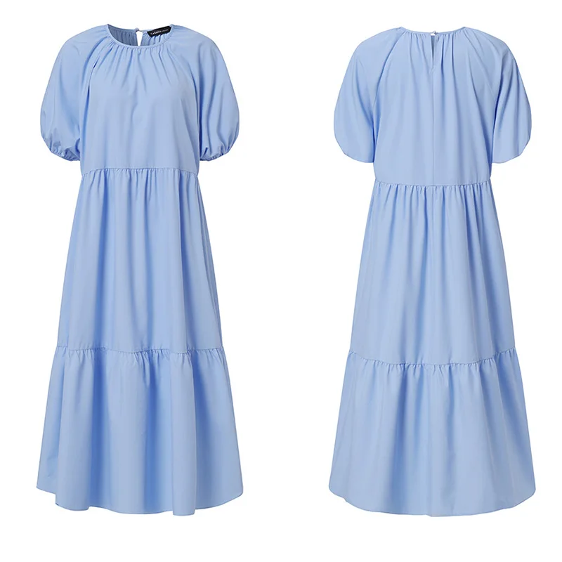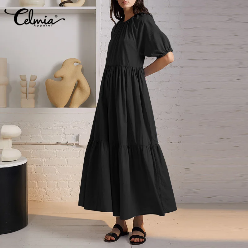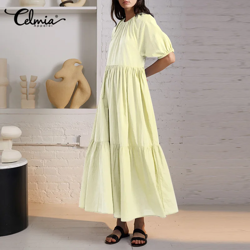 Модное плиссированное платье Celmia с пышными рукавами, лето 2021, ТРАПЕЦИЕВИДНОЕ Макси-Платье, повседневный свободный сарафан с круглым вырезом, однотонный Халат