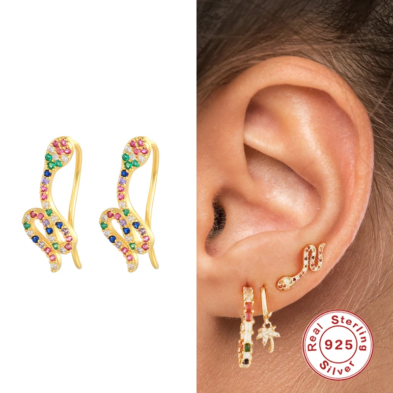 Линейка-скалолаз для женщин из серебра 925 пробы с радужным цирконием