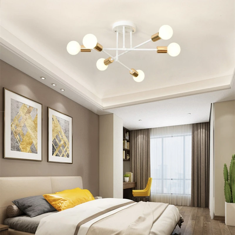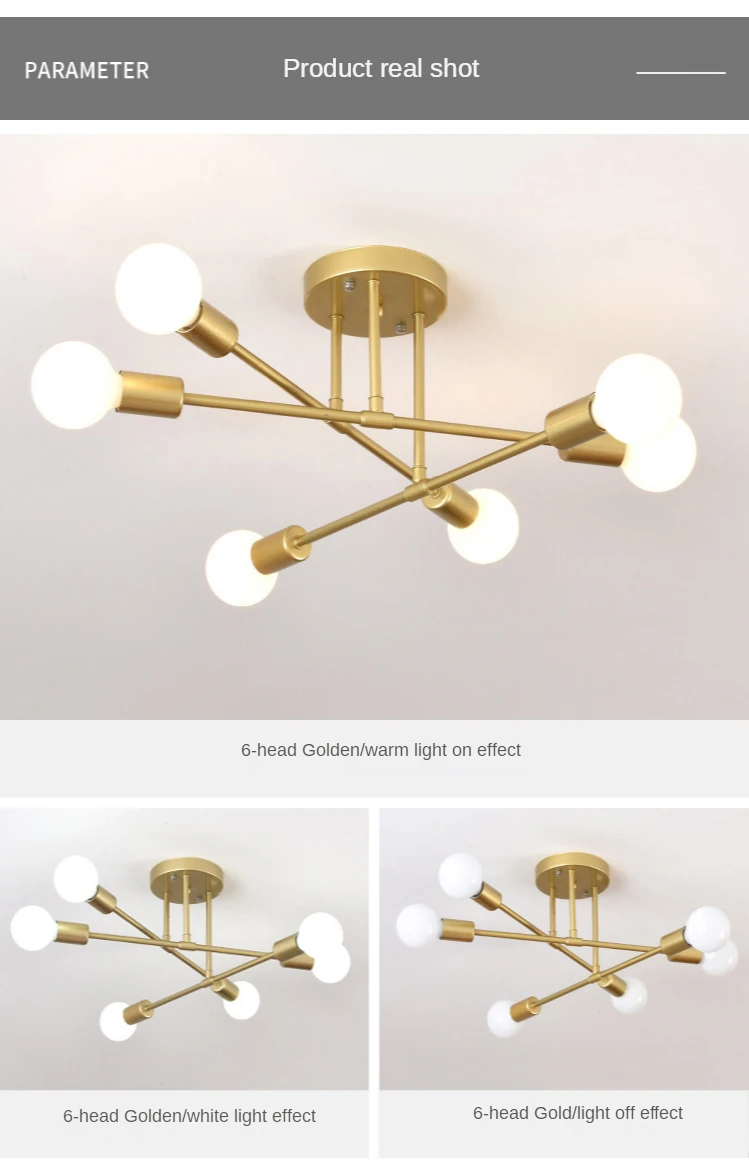 Светильник источник: E27 * 6 (лампочки не входят в комплект)Материал: железо + стеклоЦвет: Золотой/черный/белыйНапряжение: 90-260 В