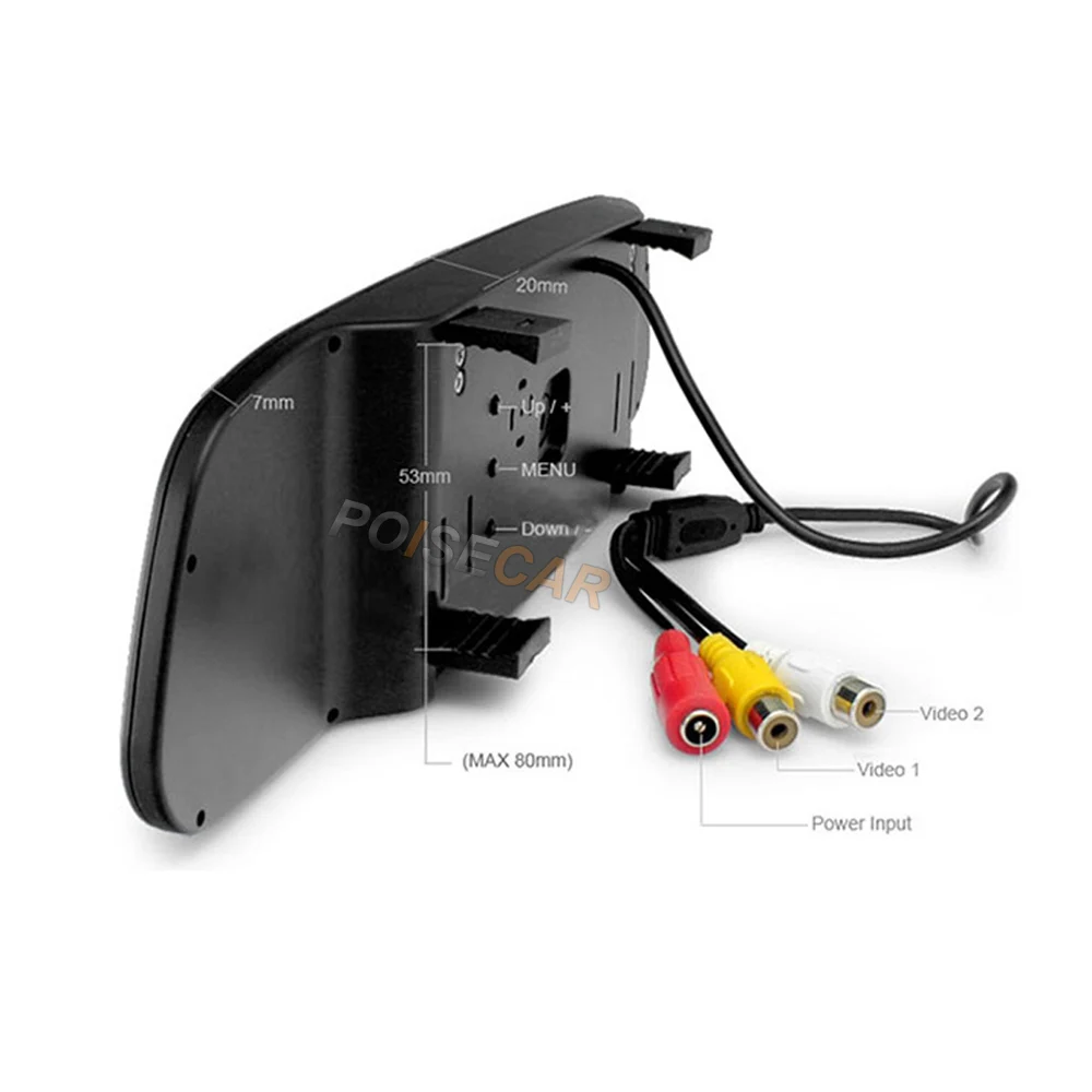 1. Высокое качество 2. Легковом автомобиле Зеркало заднего вида с 4,3 дюймов TFT ЖК-дисплей монитор 3. Видео входы для подключения к камере заднего хода, DVD, DTT. 4. Когда обратная передача включена, монитор включается автоматически и отображает изображение камеры заднего вида. 5. Используется в качестве автомобильного зеркала зеркальной поверхностью 6. Система имеет функцию автоматического включения, т. Е. Как только видео сигнал будет применен автоматически отображается изображение на мониторе. Характеристики: Экран Размер: 4,3 дюймов Формат дисплея: 16:9 Контраст: 300:1, разрешение: 800*480 Напряжение питания: 12 В постоянного тока, потребляемая мощность;<= 6 Вт Тип товара: помощь при парковке Операционная система: PAL/NTSC Видео вход: V1/v2.автоматический переключатель Рабочее напряжение: 9-16 В постоянного тока Температура хранения:-40 ~ 60 градусов Цельсия Рабочая температура:-40-60 градусов Цельсия Марка автомобиля: все автомобили