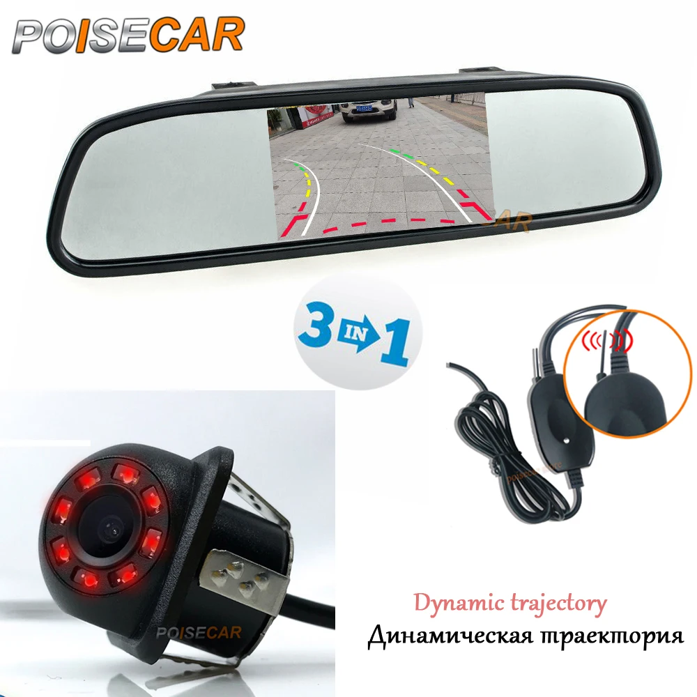 POISECAR динамический траектории заднего вида Камера Системы Ночное видение ИК свет с 4,3 "монитор заднего вида зеркало 2,4G Беспроводной