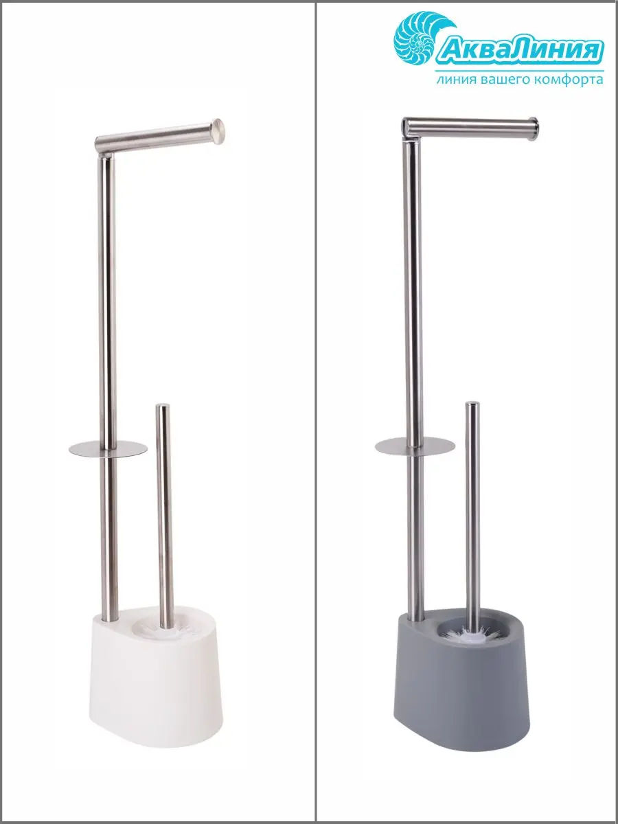 Напольная стойка для туалетной бумаги с футуристическим дизайном станет украшением любой ванной комнаты. Включает в себя металлический держатель для туалетной бумаги, ерш с металлической ручкой и пластиковую подставку цилиндрической формы. Удобный фиксатор удерживает рулон в нужном положении, препятствуя его соскальзыванию и разматыванию. Щётка ерша имеет густой жесткий ворс, обладает высокой стойкостью к стиранию. Размер: 65,5 x 12,8 x 16 см.