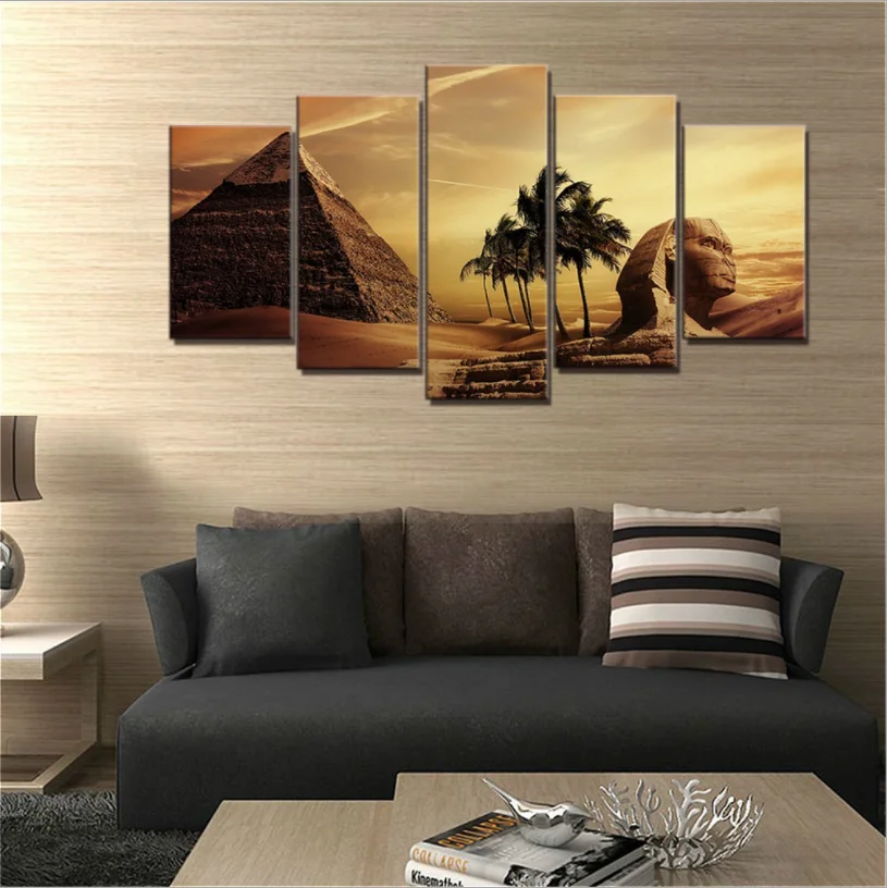 5 шт. картина маслом модуль плакат комната стены пирамиды Египетский Сфинкс Закат пейзаж Картина HD проектор для домашнего украшения бескаркасные
