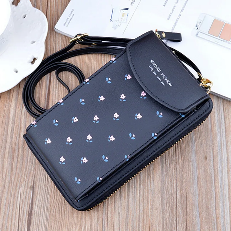 Женский кошелек с цветочным принтом, кожаный ремешок на плечо, женс...