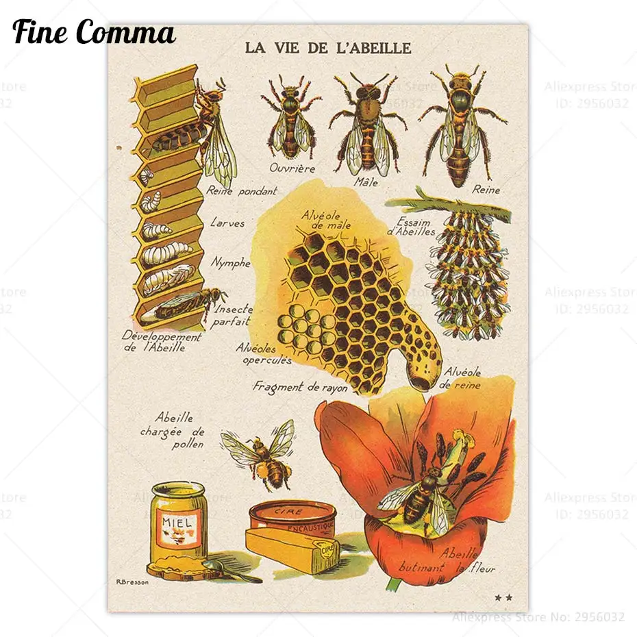 Винтажный постер с изображением пчелы, Настенный декор под старину, насекомые, французская пчела, схема пчелы