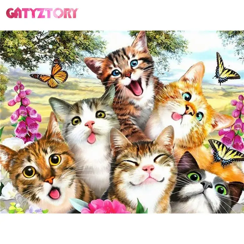 GATYZTORY DIY Алмазная картина черный Кот ручной работы Домашний Де...