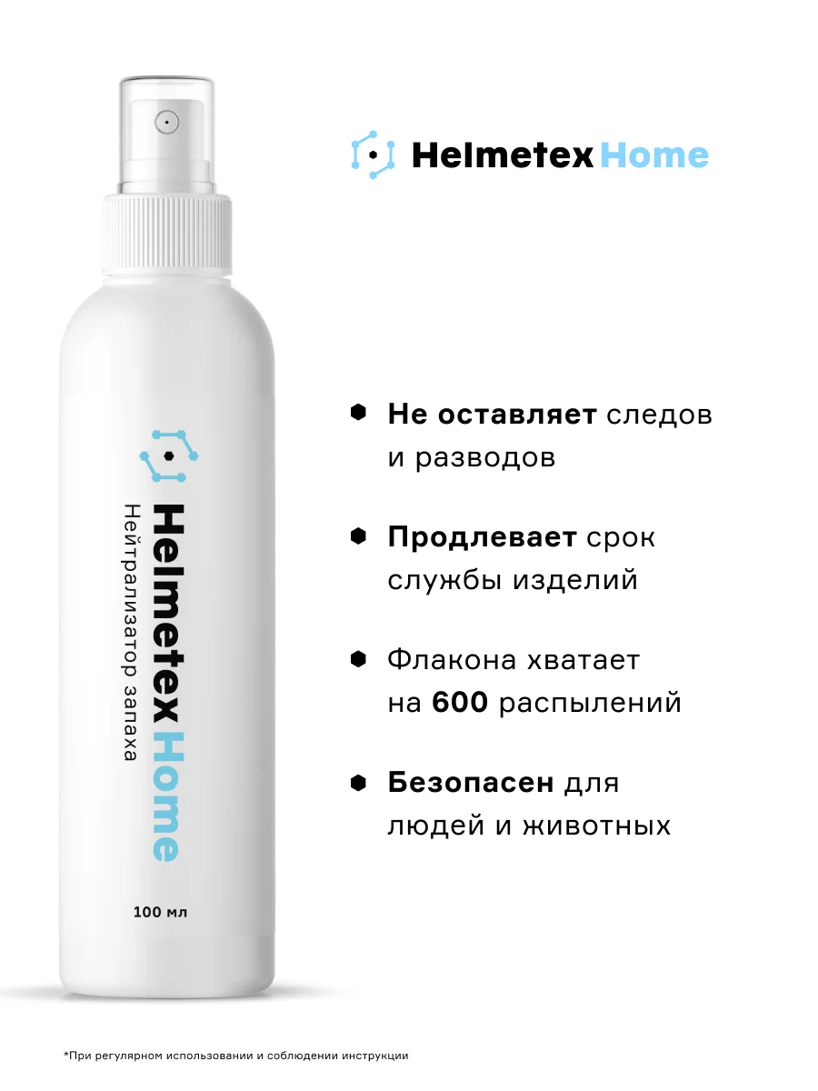 Нейтрализатор запаха Helmetex Home устраняет источник запаха и не имеет аналогов в Мире. Это средство от запаха намного эффективнее освежителей воздуха, которые временно маскируют неприятные запахи. Helmetex Home, как ликвидатор запаха решает проблему неприятных запахов в вашем доме и наполняет его комфортом и уютом. Средство от запаха эффективно расщепляет и поглощает запахи различного происхождения: животных, табачного дыма, пота, сырости, прелости, пищевого гниения, гнилости и пр. Продлевает срок службы вещей за счет снижения количества стирок. Обладает антибактериальным и дезинфицирующим действием. Подходит для обработки различных поверхностей и материалов, в том числе, текстильных изделий: мягкой мебели, ковров, штор, одежды, холодильников и т.д. Поглотитель запаха Helmetex станет вашим надежным средством от запахов среди хозяйственных товаров в вашем доме, гараже, гардеробе, кухне.