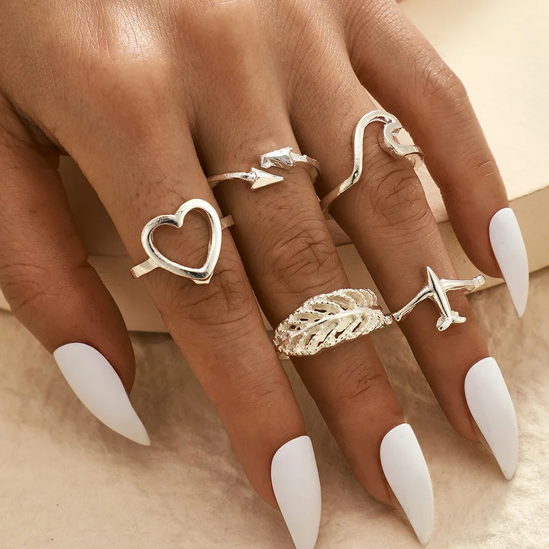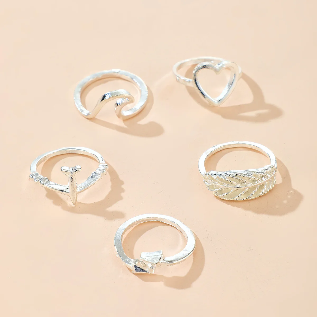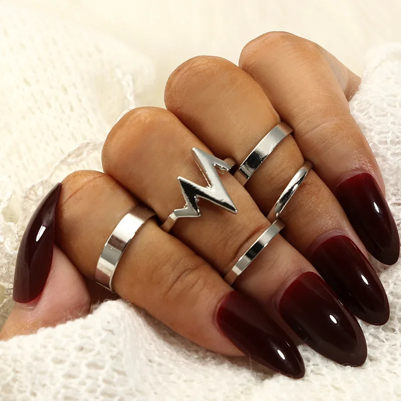 Набор колец в богемном стиле для женщин, серебристые кольца с молнией, женские кольца, кольца для девочек, аксессуары, модные ювелирные изделия, кольца