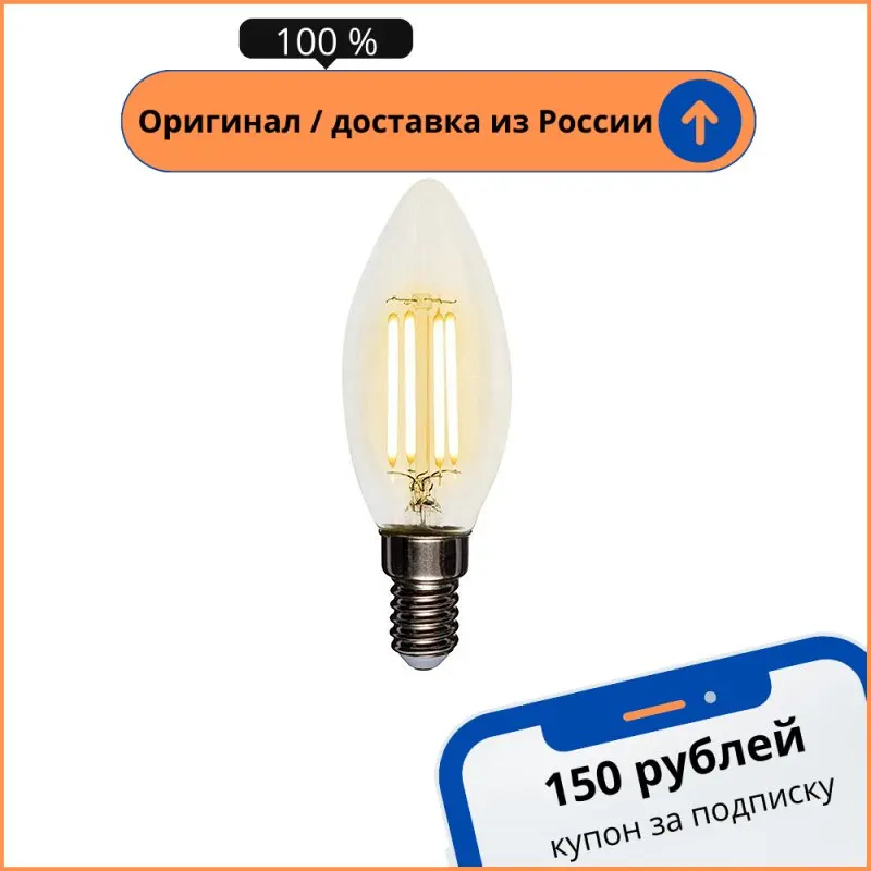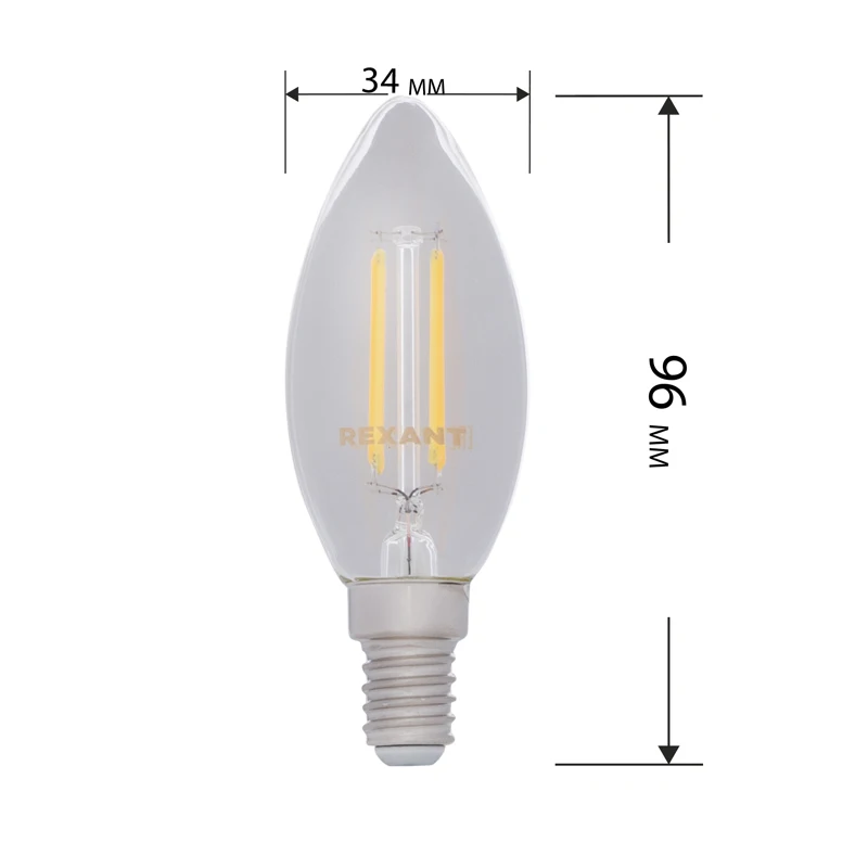 Лампа филаментная диммируемая REXANT Свеча CN35 7.5 Вт 600 Лм 2700K E14, прозрачная колба