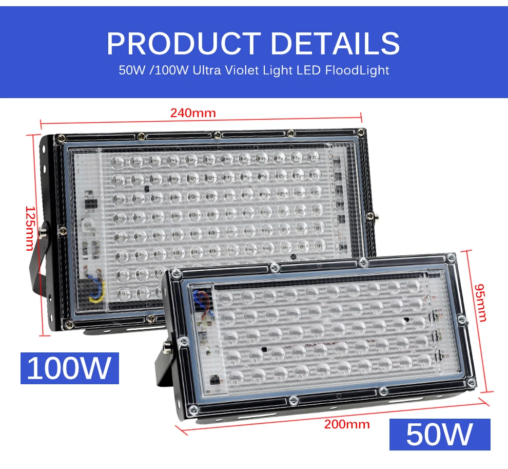 395nm 400nm Led УФ прожектор водонепроницаемый Ultravilet лампа 2835 чипы 50 светодиодов 96 светодиодов 50 Вт 100 Вт с переключателем