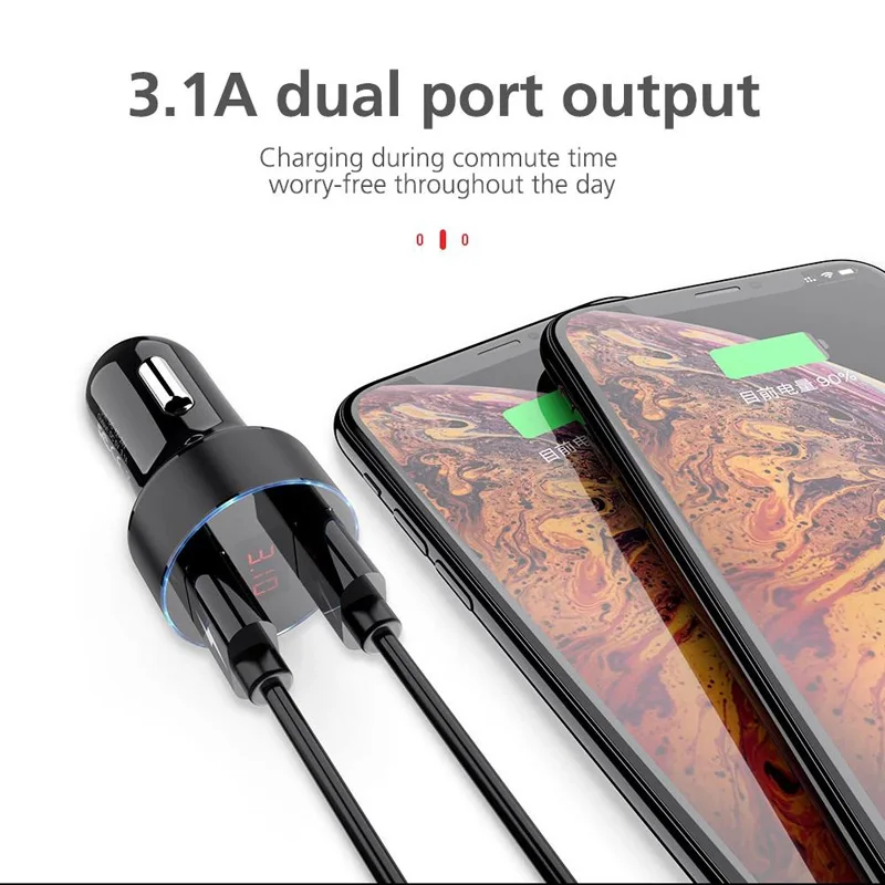 3,1 А двойной USB-порт ЖК-дисплей автомобильное зарядное устройство...
