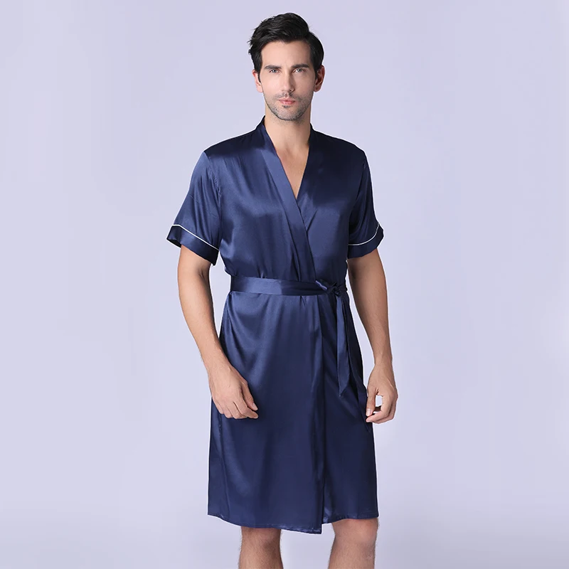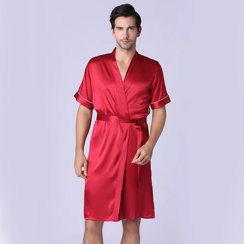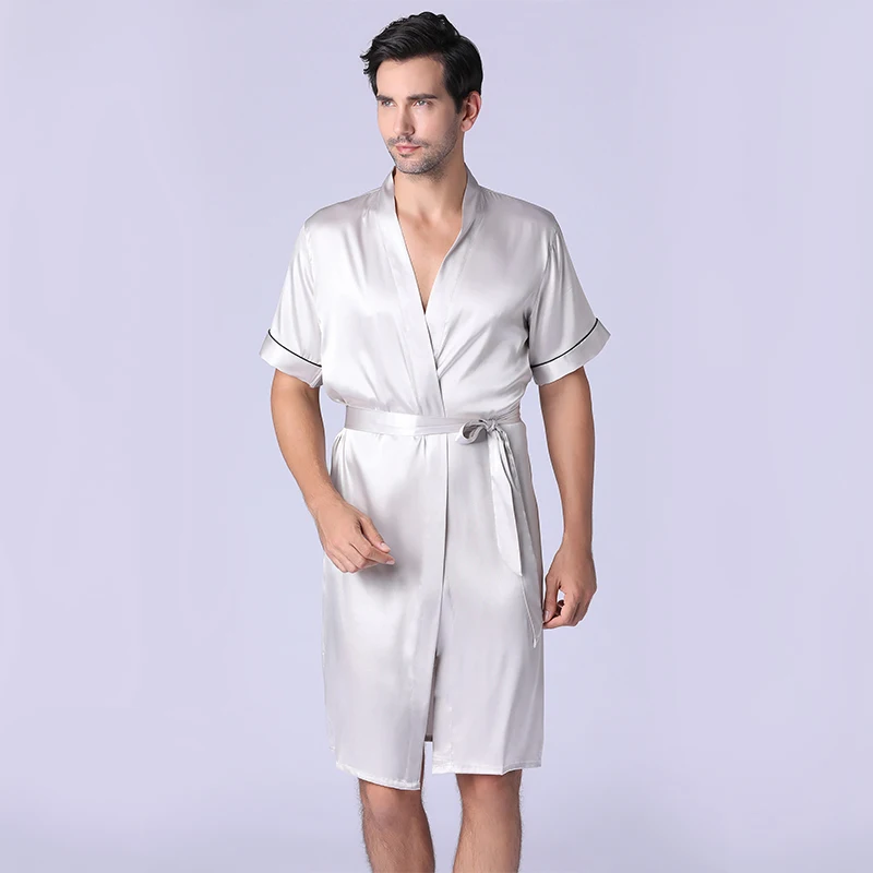 Новинка 2021, Летняя Повседневная Пижама, шелковая ночная рубашка для мужчин, комфортные шелковистые банные халаты, благородный халат, Мужская пижама-кимоно на заказ