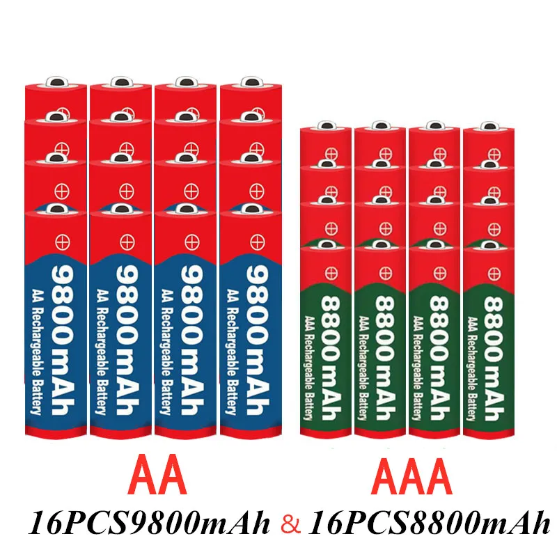 100% Оригинальный Новый 1,5 в AA 9800 мА ч + 1,5 в AAA 8800 мА ч, перезаряжаемая батарея для часов, игрушек, камеры