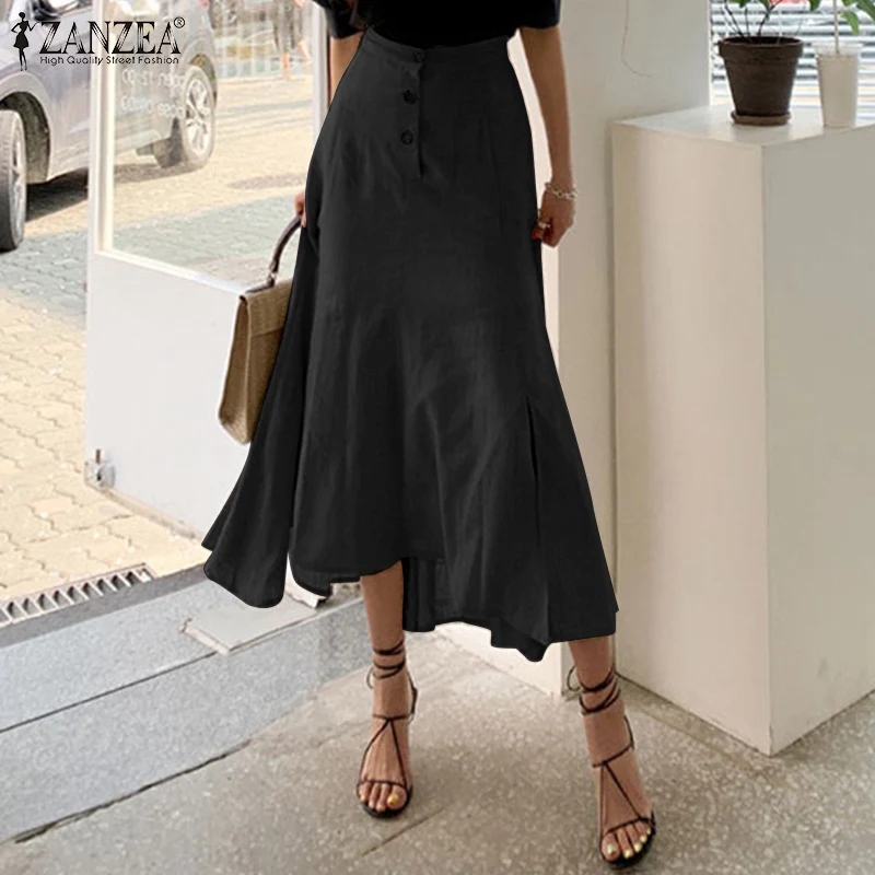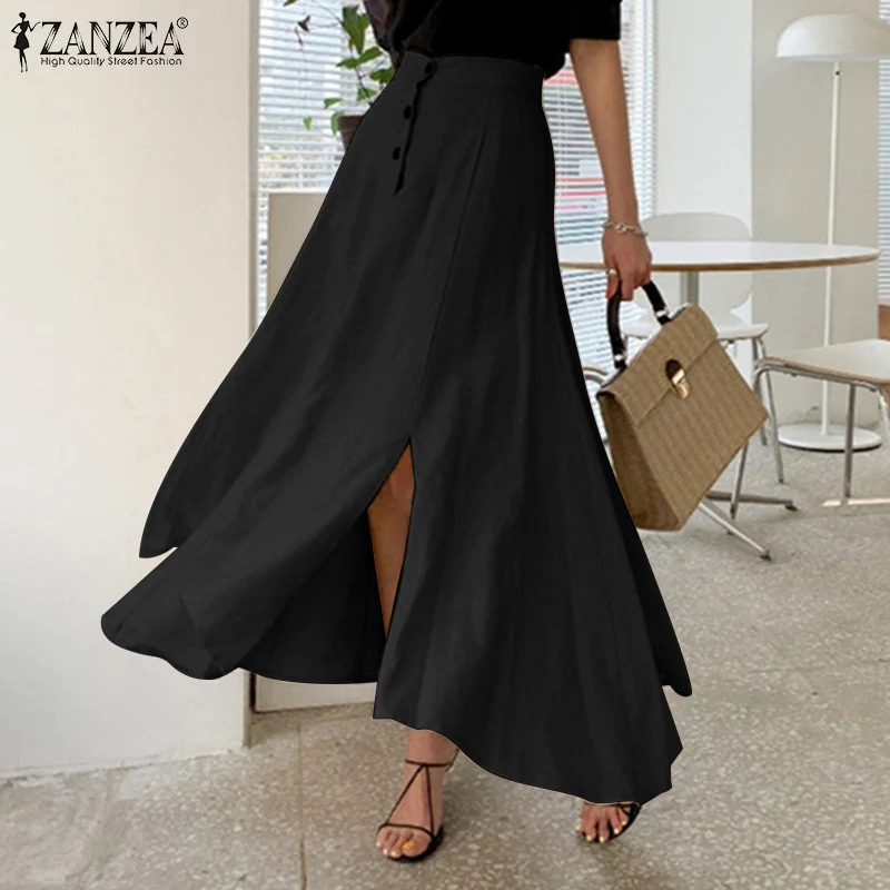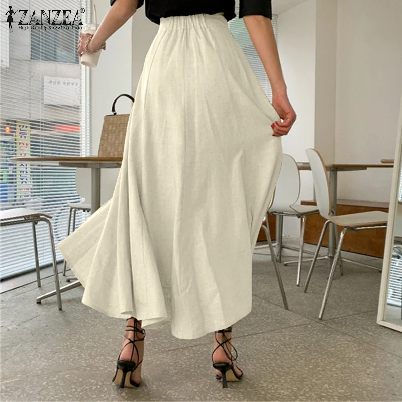 Юбка ZANZEA Женская винтажная однотонная, модная Длинная Элегантная...