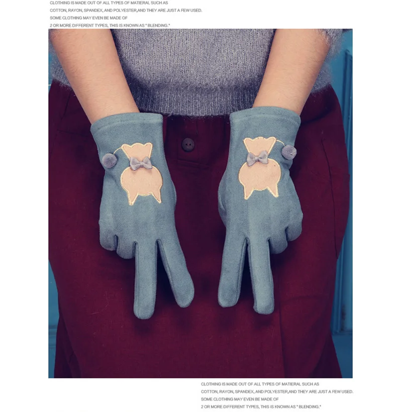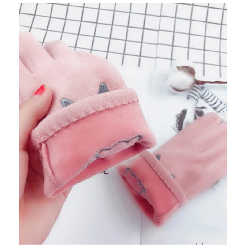 Женские зимние теплые варежки, перчатки с милым мультяшным медведем, перчатки для сенсорного экрана, зимние Бархатные замшевые велосипедные перчатки для вождения D92