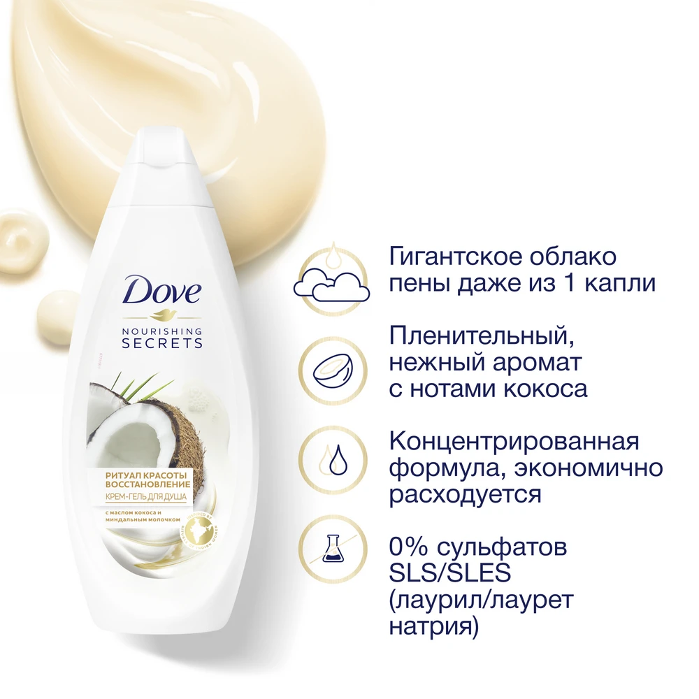 Секреты красоты Индии вдохновили нас на создание крем-геля для душа Dove Ритуал красоты Восстановление. Он сочетает в себе масло кокоса и миндальное молочко, а его кремовая текстура превратит принятие душа в ежедневный ритуал заботы о себе, делая Вашу кожу более мягкой и гладкой сразу после душа.